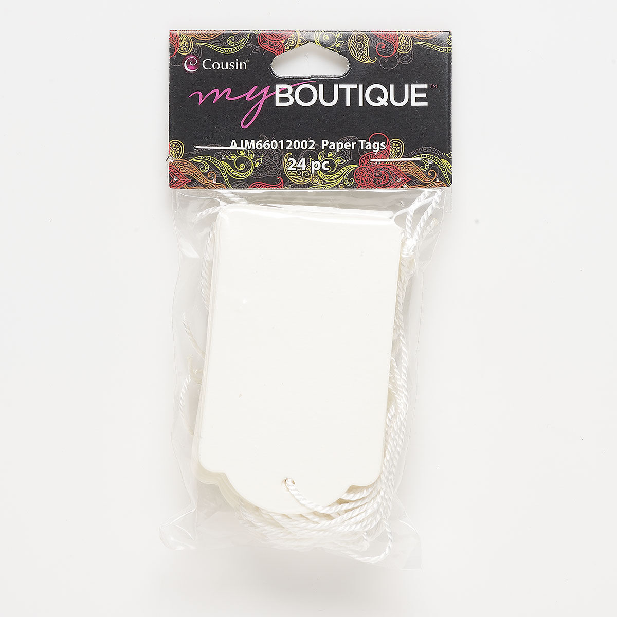 Tag, paper and nylon string, white, 2.75 x 1.75 inch rectangle. Sold per pkg of 24.