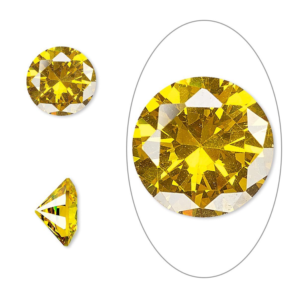 Gem, cubic zirconia, topaz gold, 10mm faceted round, Mohs hardness 8-1/2. Sold individually.