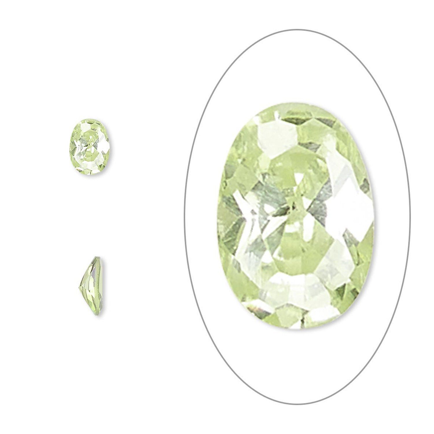 Gem, cubic zirconia, peridot green, 6x4mm faceted oval, Mohs hardness 8-1/2. Sold per pkg of 2.