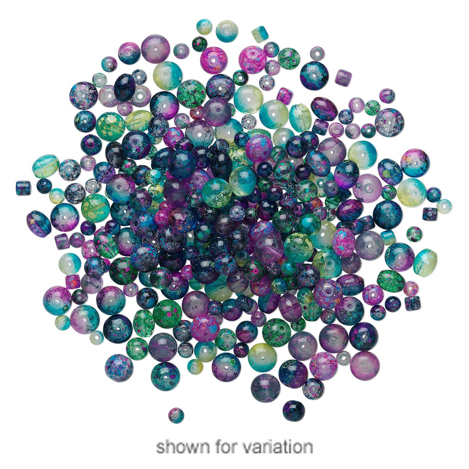 Delightful mix of colors in economical bulk package. Ideal for multi-strand jewelry designs. Shapes can include round, rondelle, oval and more.