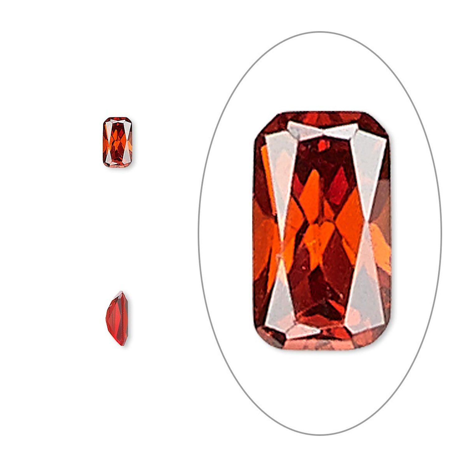 Gem, cubic zirconia, ruby red, 5x3mm faceted emerald-cut, Mohs hardness 8-1/2. Sold per pkg of 5.