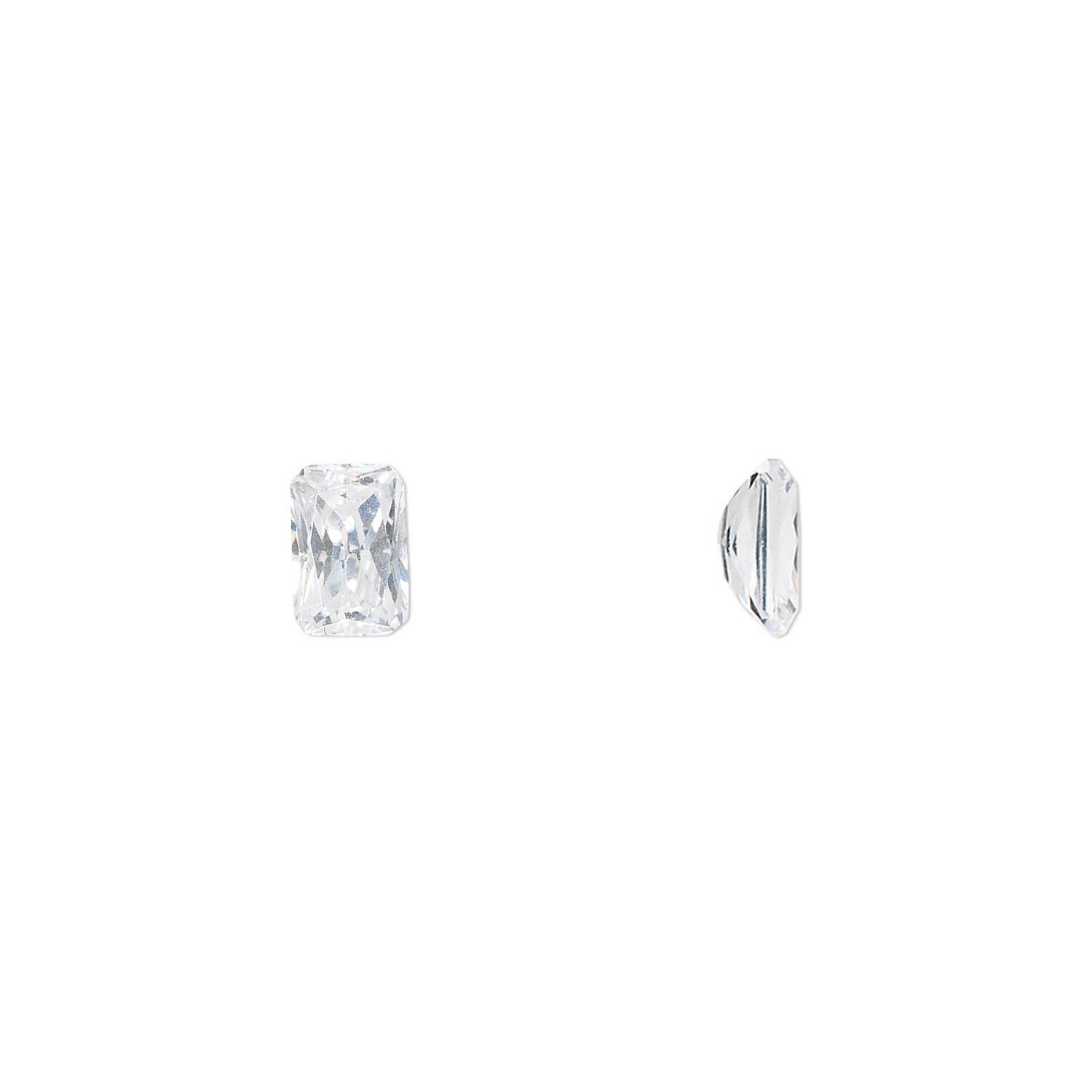 Gem, cubic zirconia, spinel white, 6x4mm faceted emerald-cut, Mohs hardness 8-1/2. Sold per pkg of 2.