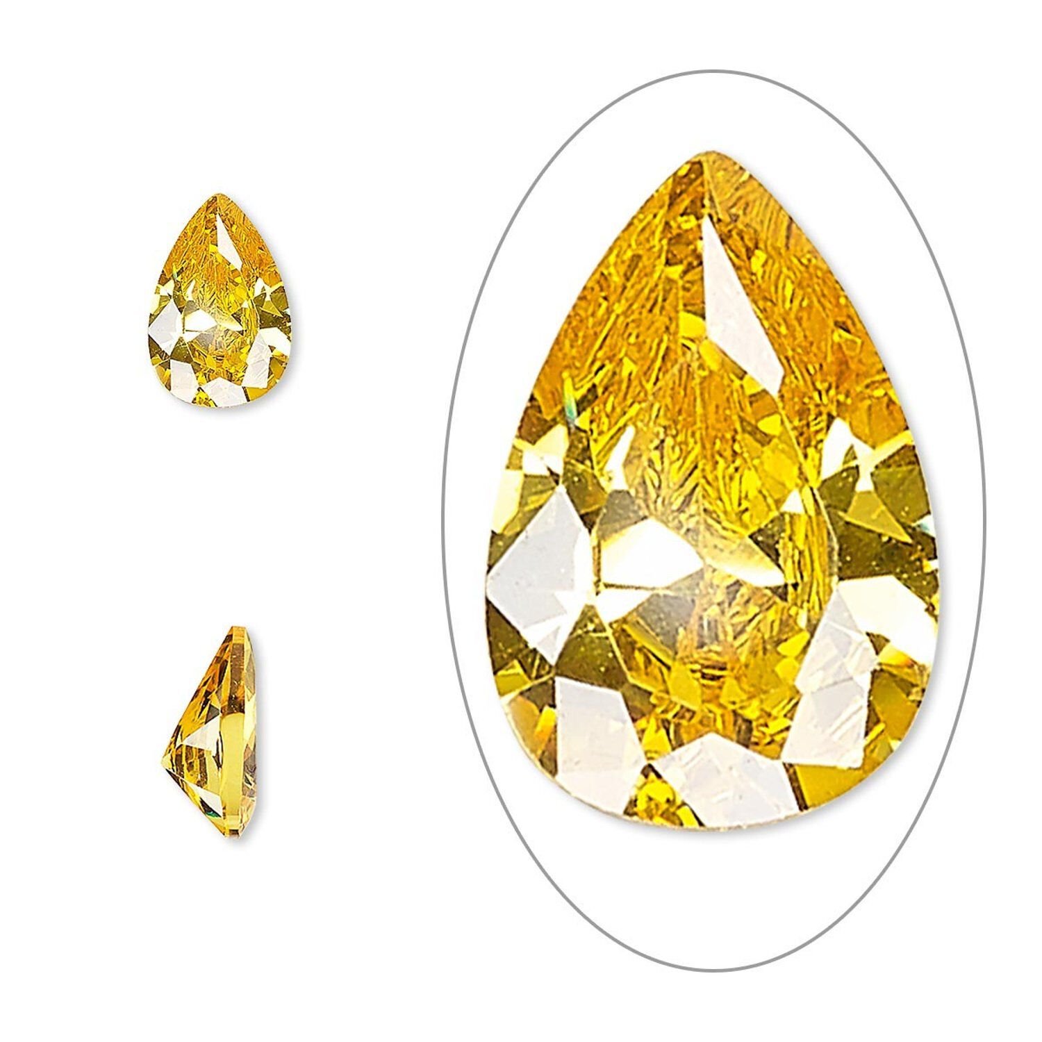 Gem, cubic zirconia, topaz gold, 9x6mm faceted pear, Mohs hardness 8-1/2. Sold individually.