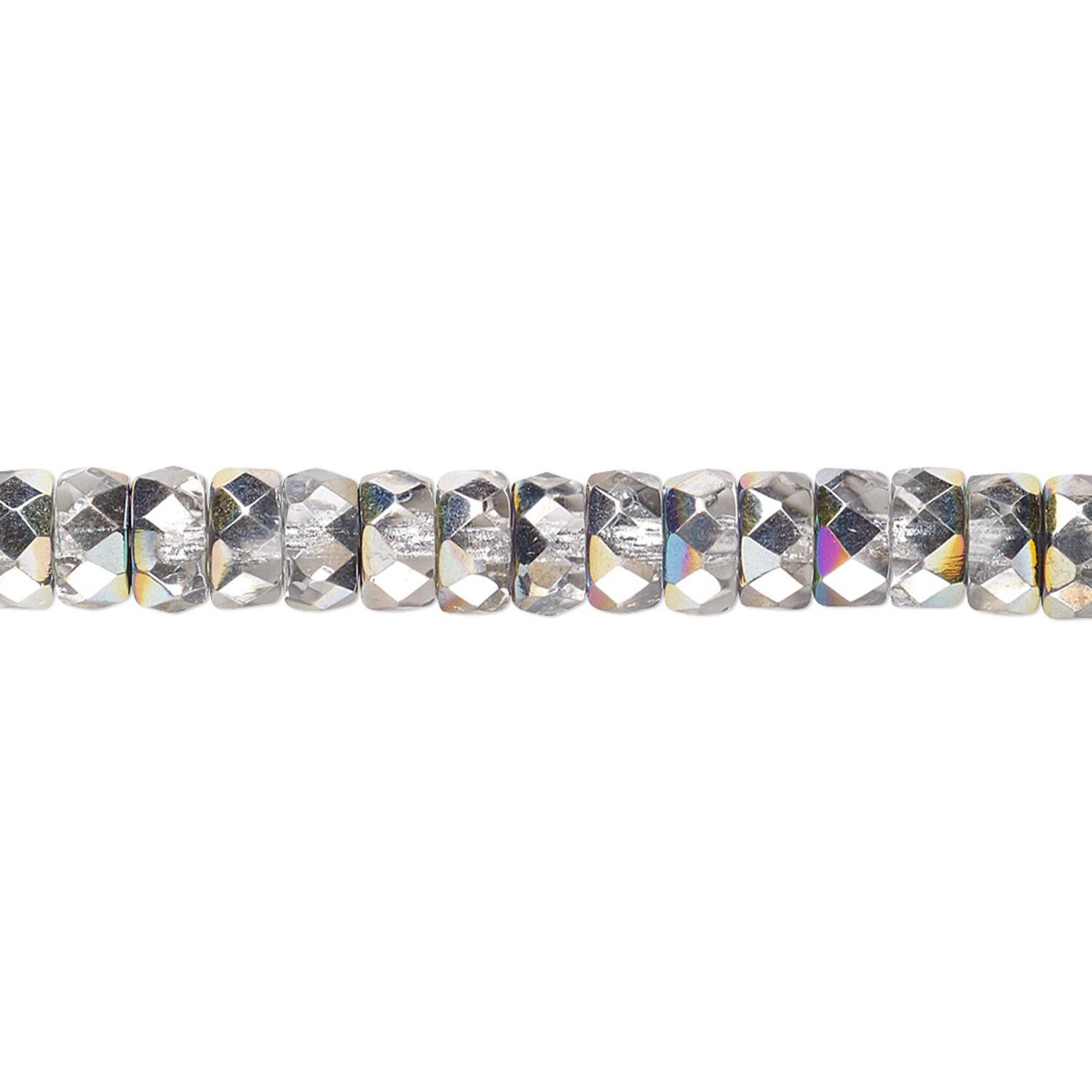 Bead, Czech fire-polished glass, clear vitrail, 6x3mm faceted rondelle. Sold per 15.5-16 inch strand.