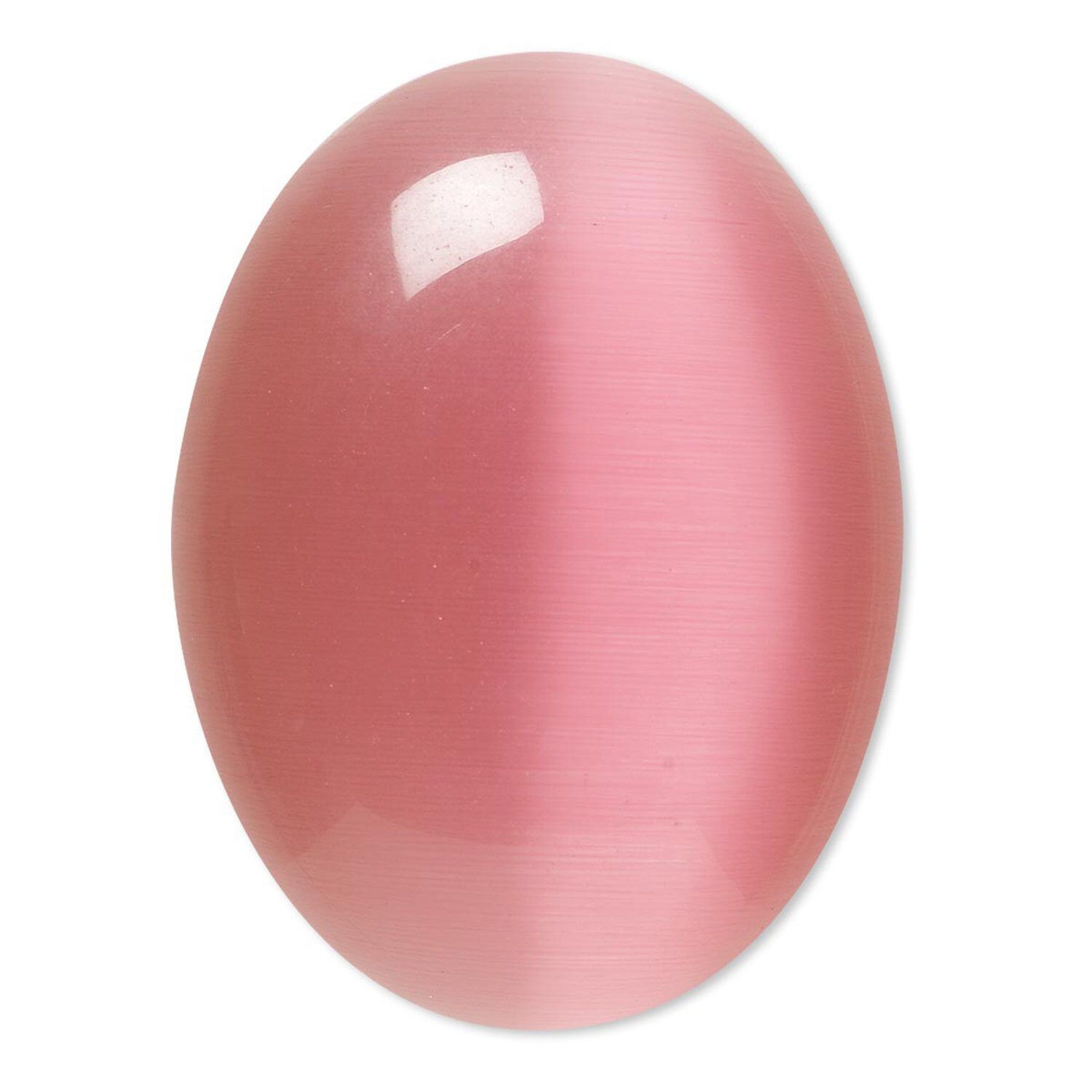 Cabochon, cat's eye glass (fiber optic glass), pink, 40x30mm calibrated oval, quality grade. Sold individually.