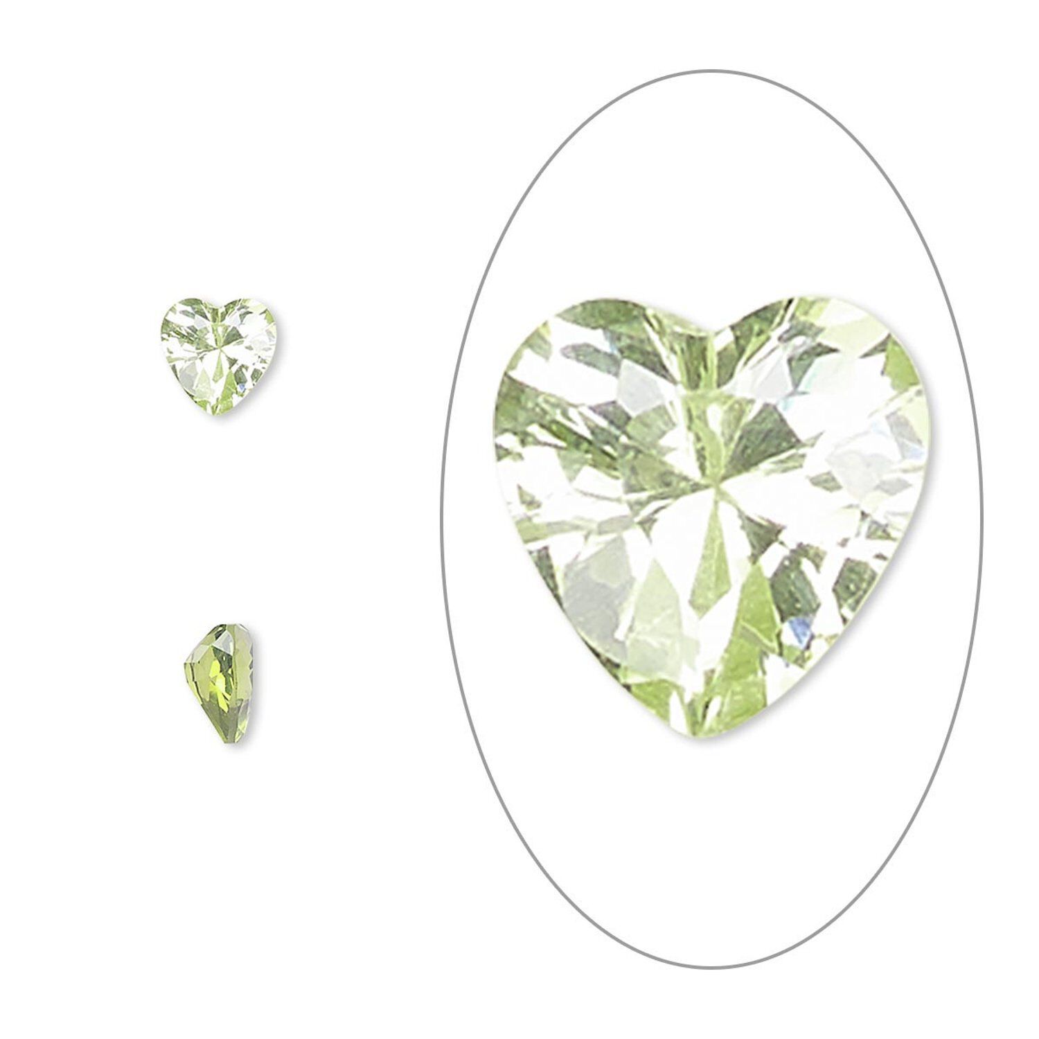 Gem, cubic zirconia, peridot green, 5mm faceted heart, Mohs hardness 8-1/2. Sold per pkg of 2.