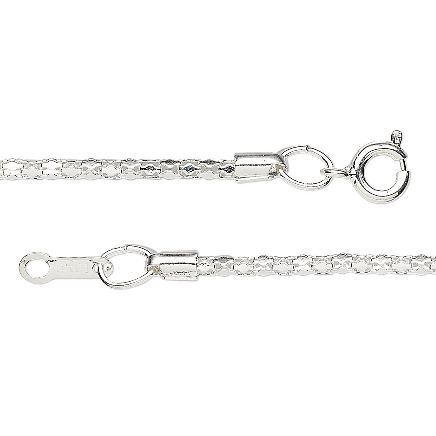 Chain 1pkg10 silver-plated diamond, 1.9mm rounded / springring clasp, steel 18 inch