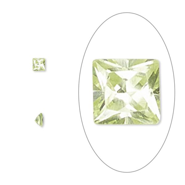 Gem, cubic zirconia, peridot green, 3mm faceted square, Mohs hardness 8-1/2. Sold per pkg of 5.