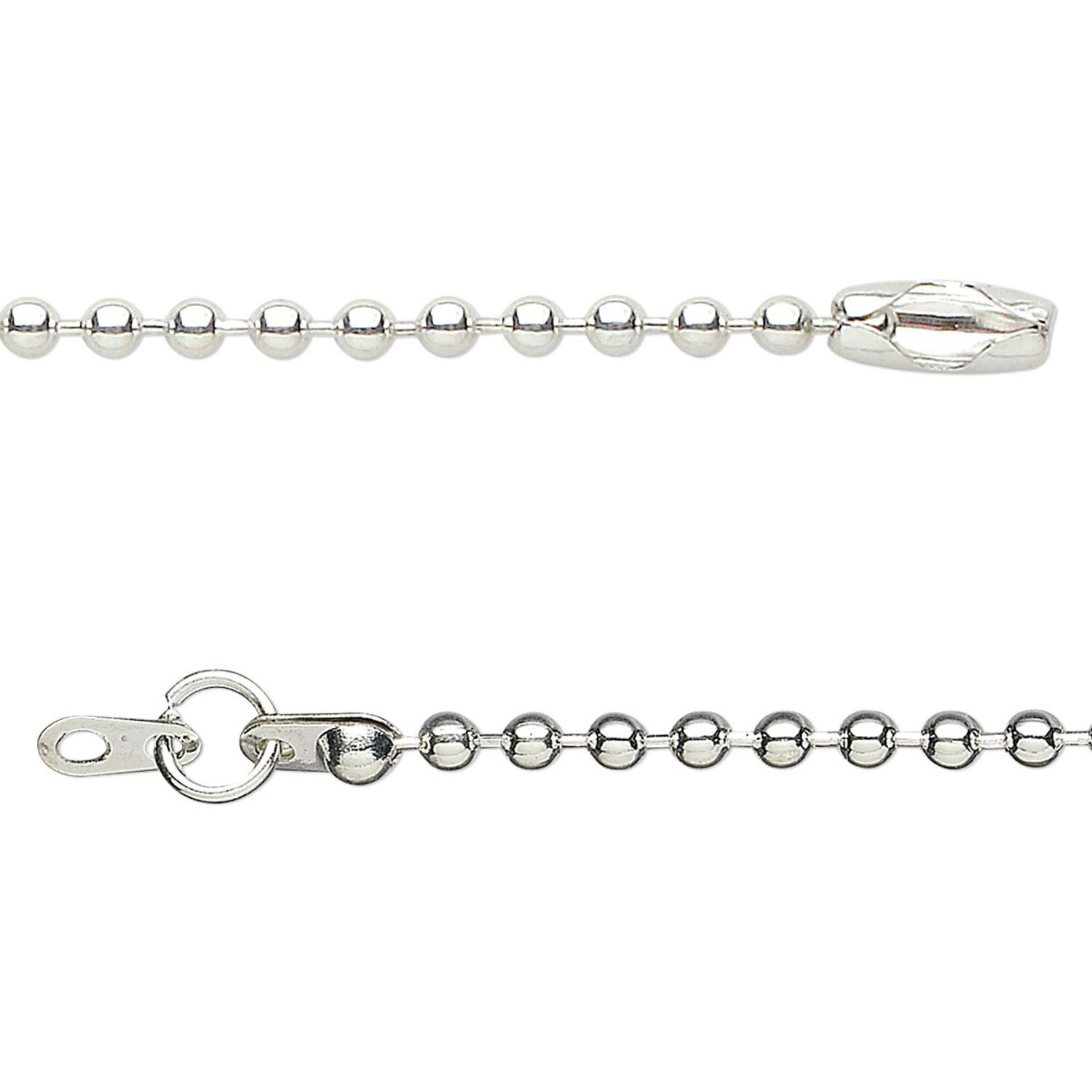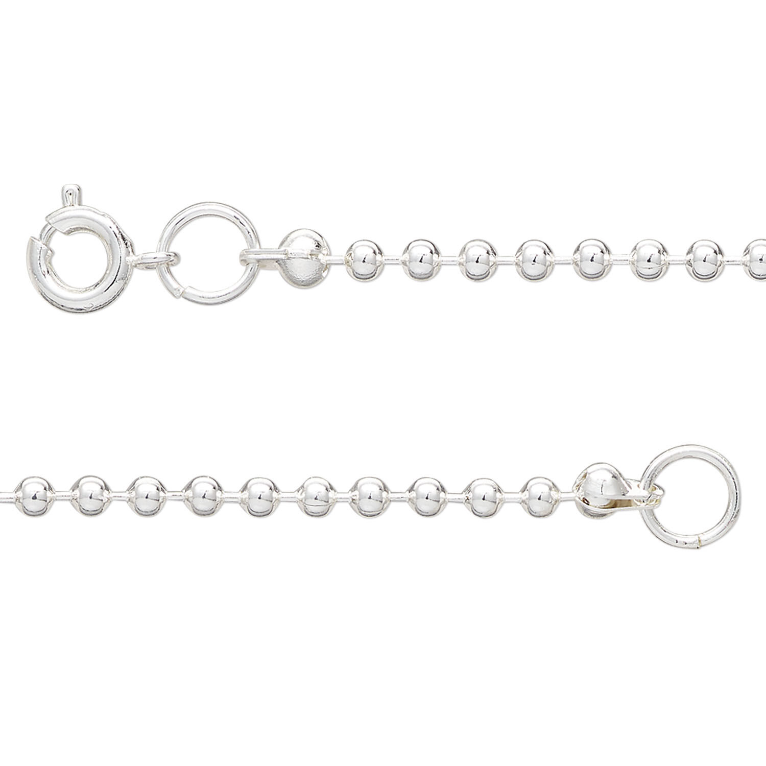 Chain 1pkg10 silver-plated ball, 2.4mm / springring clasp, steel 18 inch