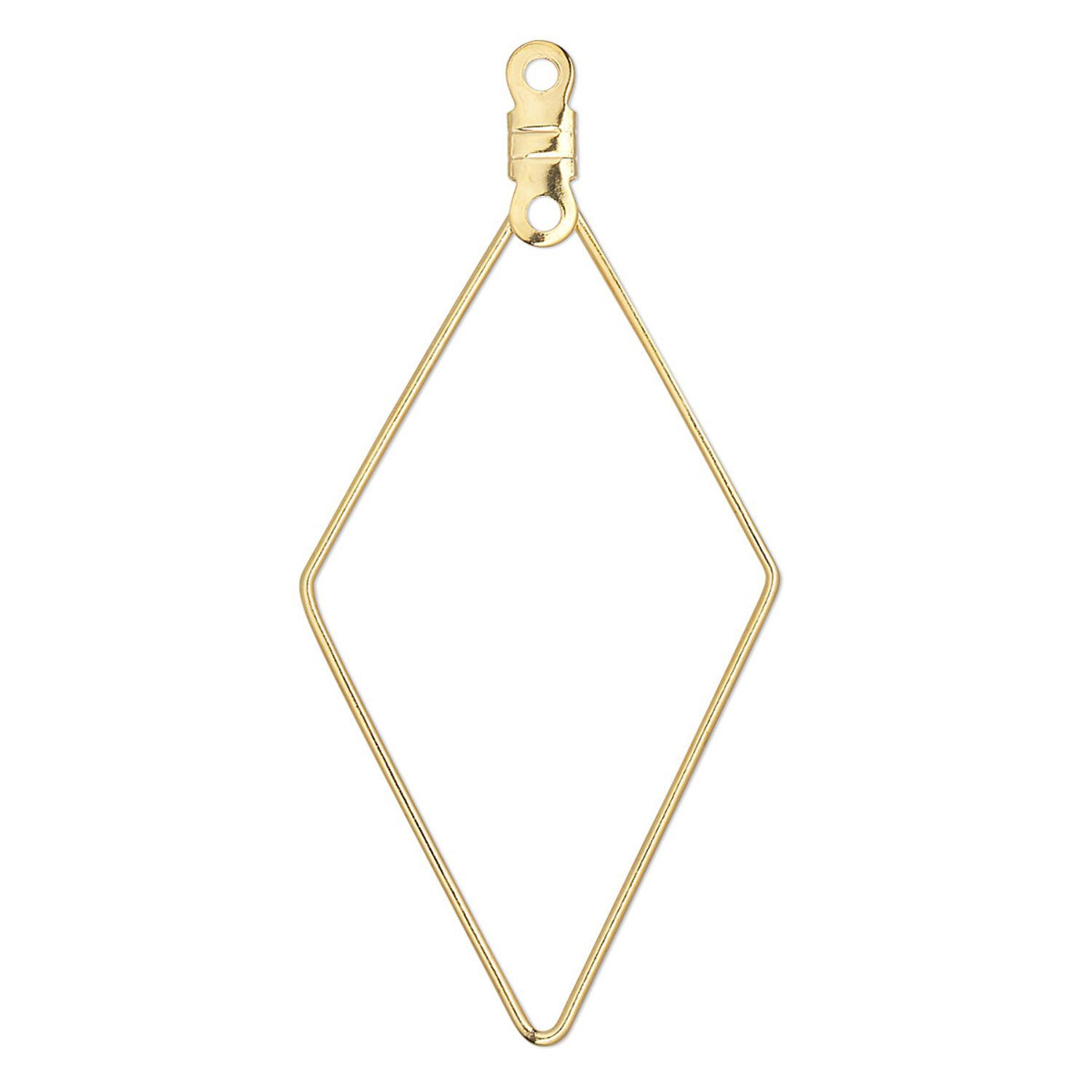 Beading hoop, gold-plated steel, 44x23mm open diamond with closed loop. Sold per pkg of 10.