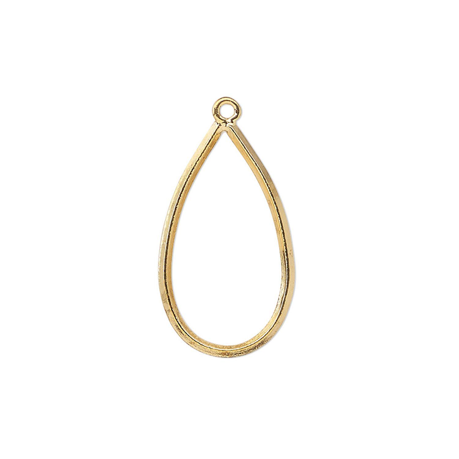 Drop, gold-plated brass, 22x13mm diamond wire open teardrop. Sold per pkg of 10.