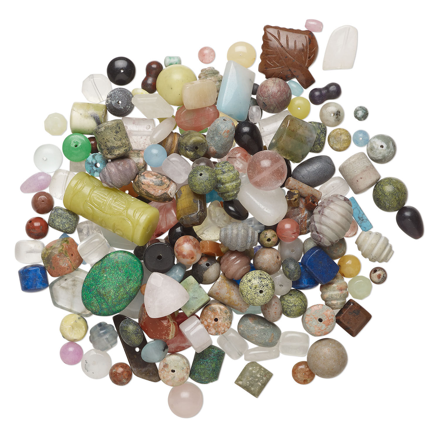 Multi-gemstone / glass 1pkg1, drilled / undrilled mixed shape bead 1/2 lb mix 4-35mm
