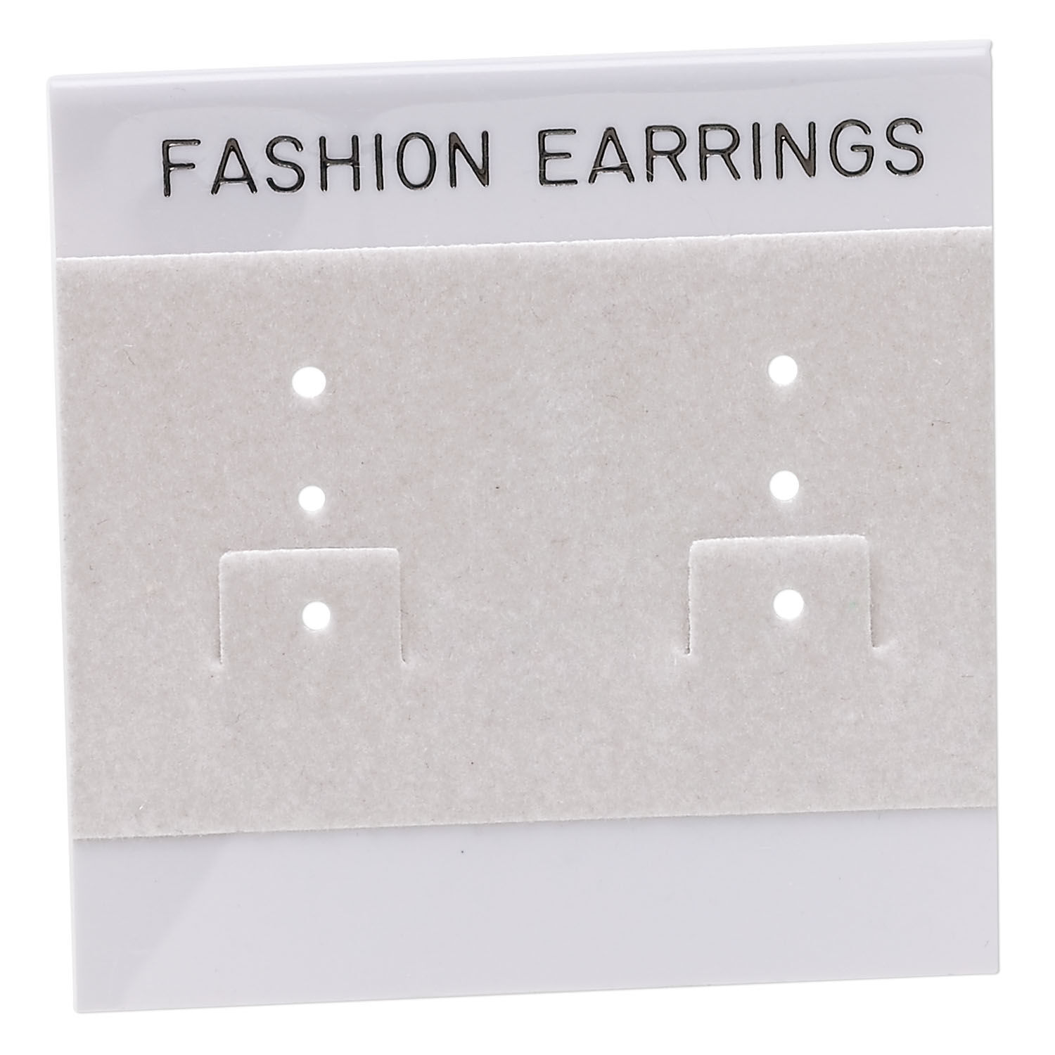 Earring card, flocked plastic, grey and black, 2x2-inch square with "FASHION EARRINGS." Sold per pkg of 100.