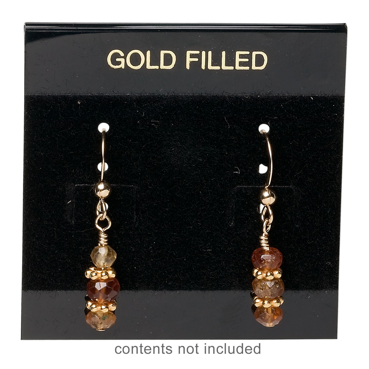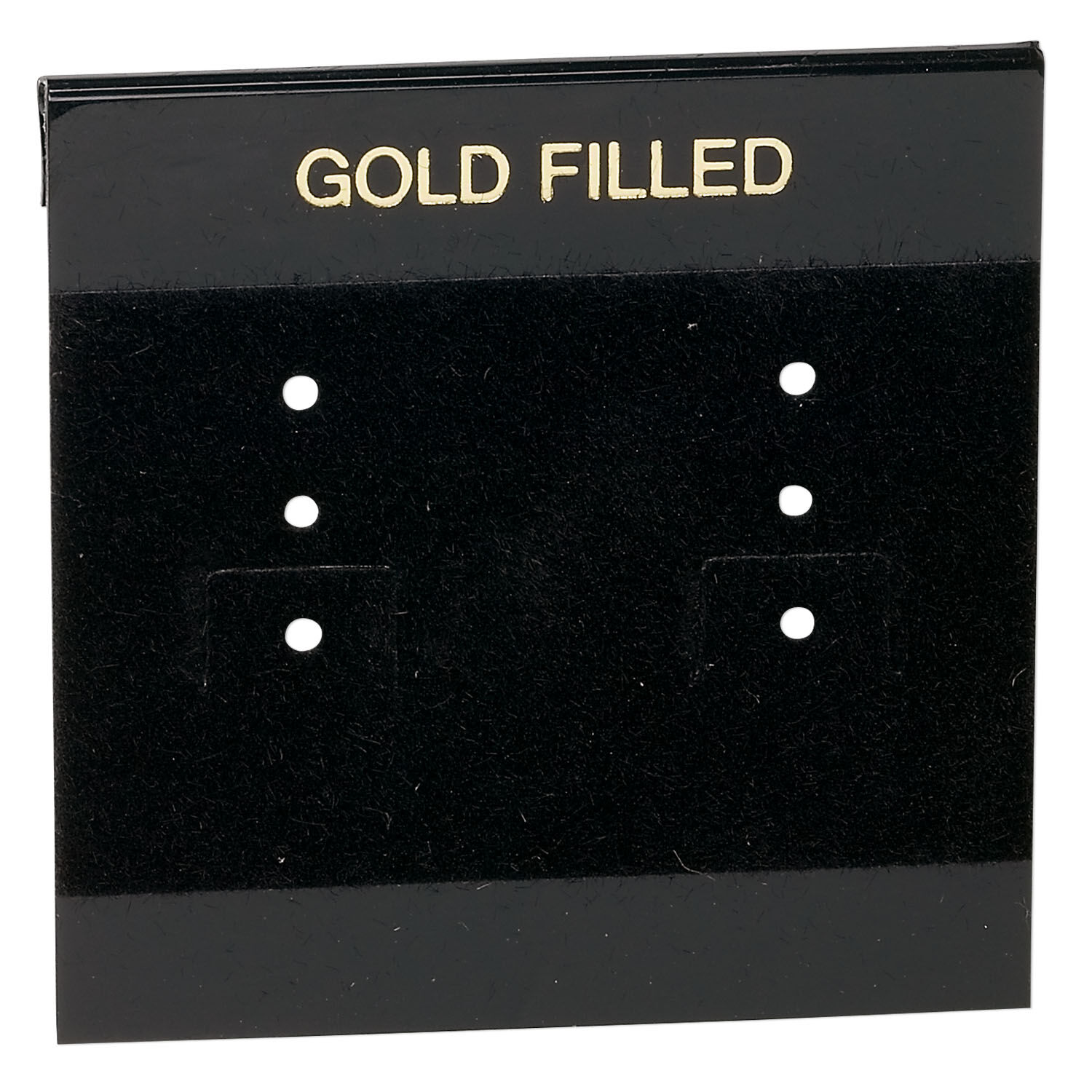 Earring card, flocked plastic, black and gold, 2x2-inch square with "GOLD FILLED." Sold per pkg of 100.