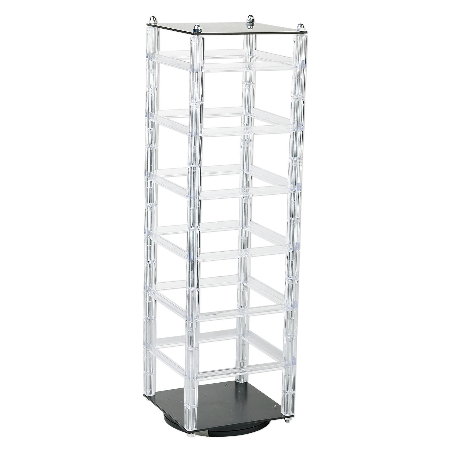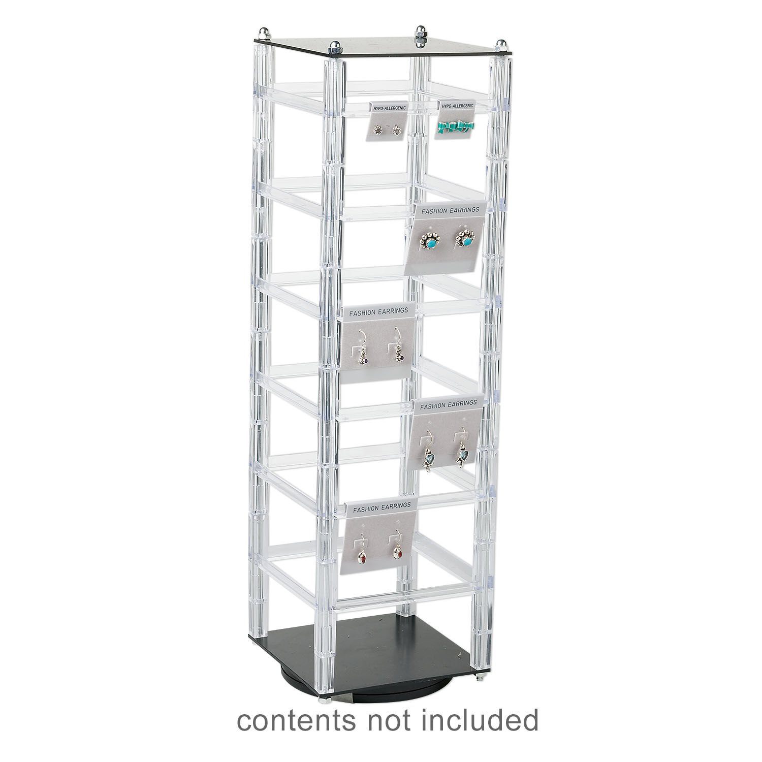 Display, earring, acrylic, clear and black, 18x5x5-inch revolving square. Sold individually.