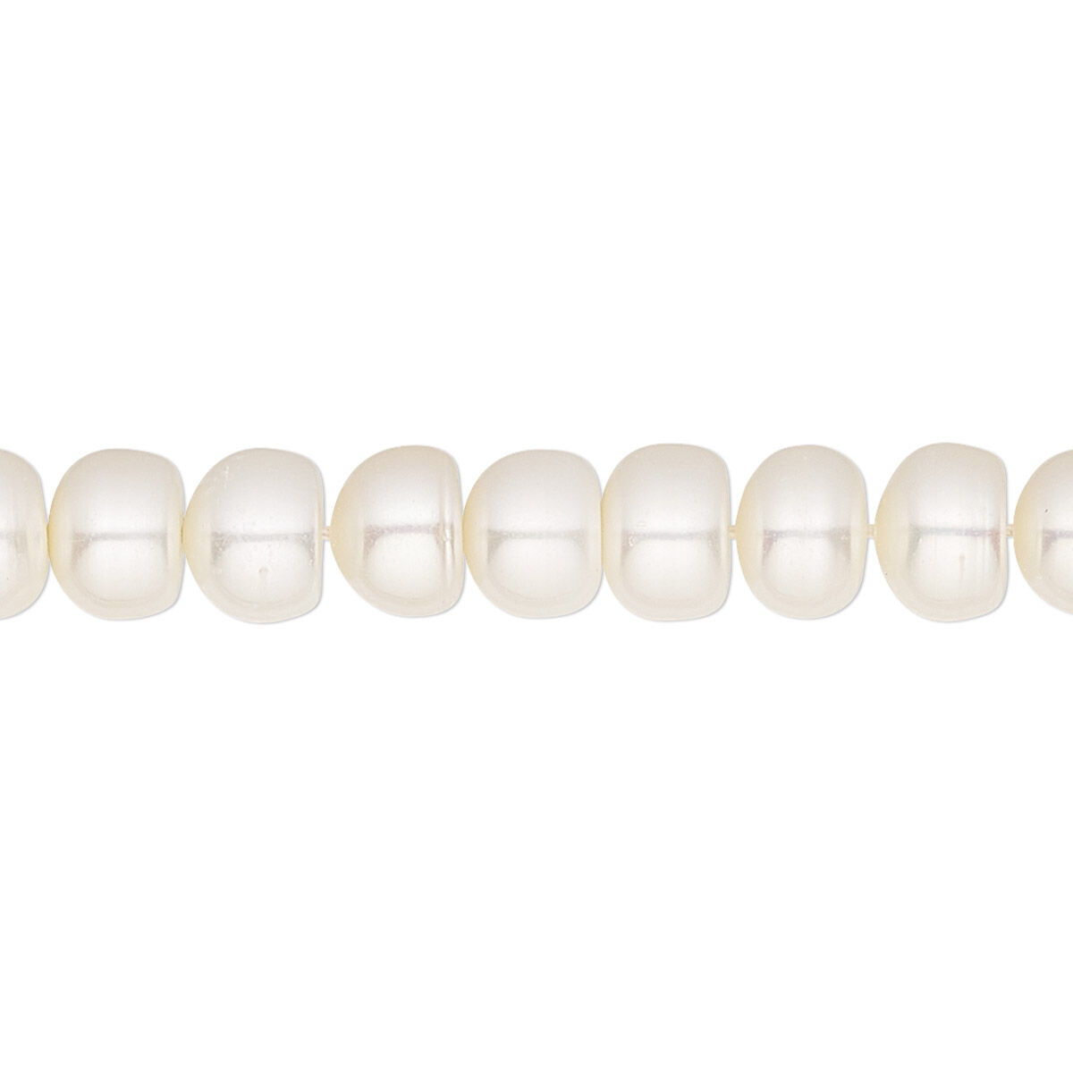Pearl, White Lotus™, cultured freshwater (bleached), white, 7.5-8mm button, B grade, Mohs hardness 2-1/2 to 4. Sold per 15-1/2" to 16" strand.