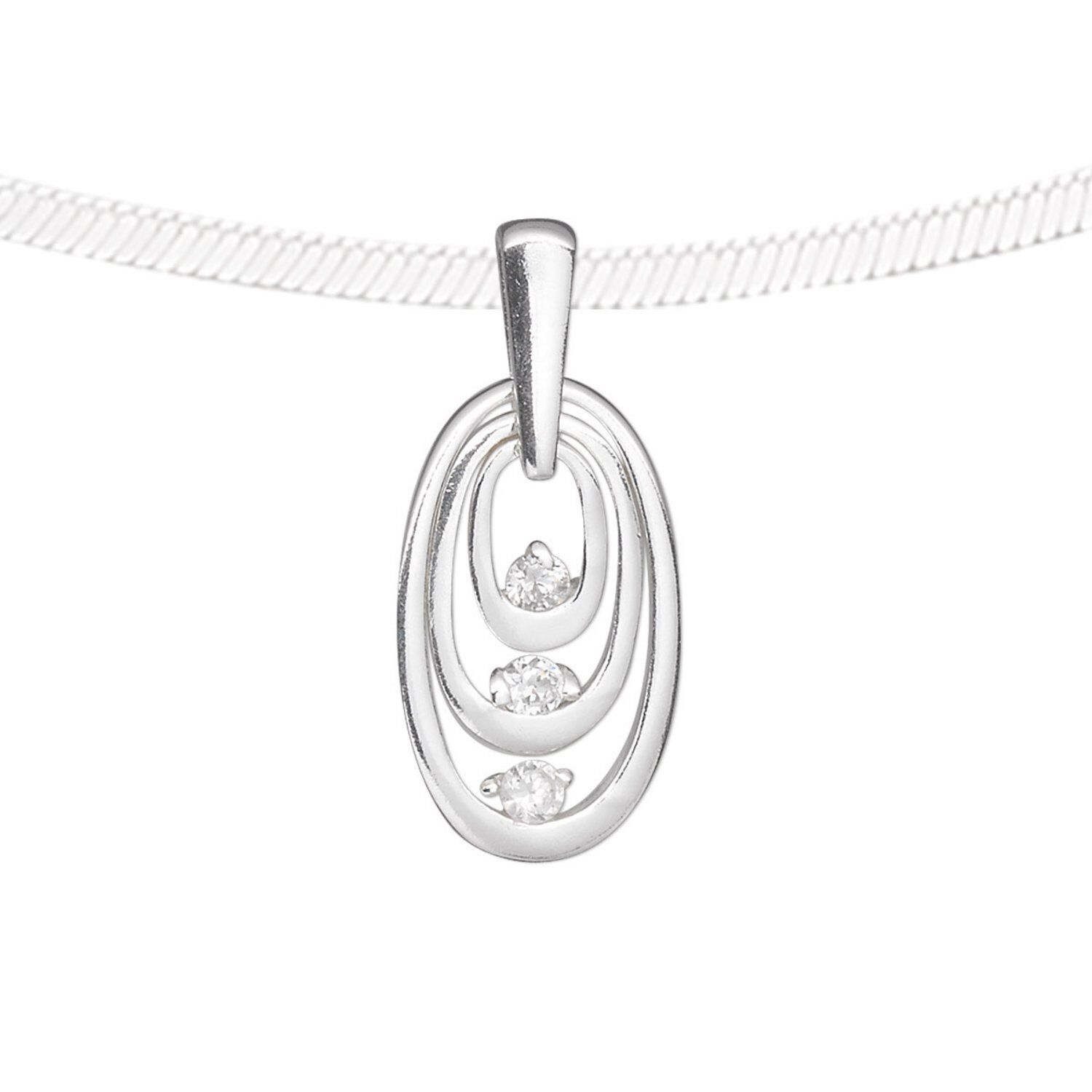 Pendant, sterling silver and cubic zirconia, clear, 19x11mm single-sided 3-oval ring. Sold individually.