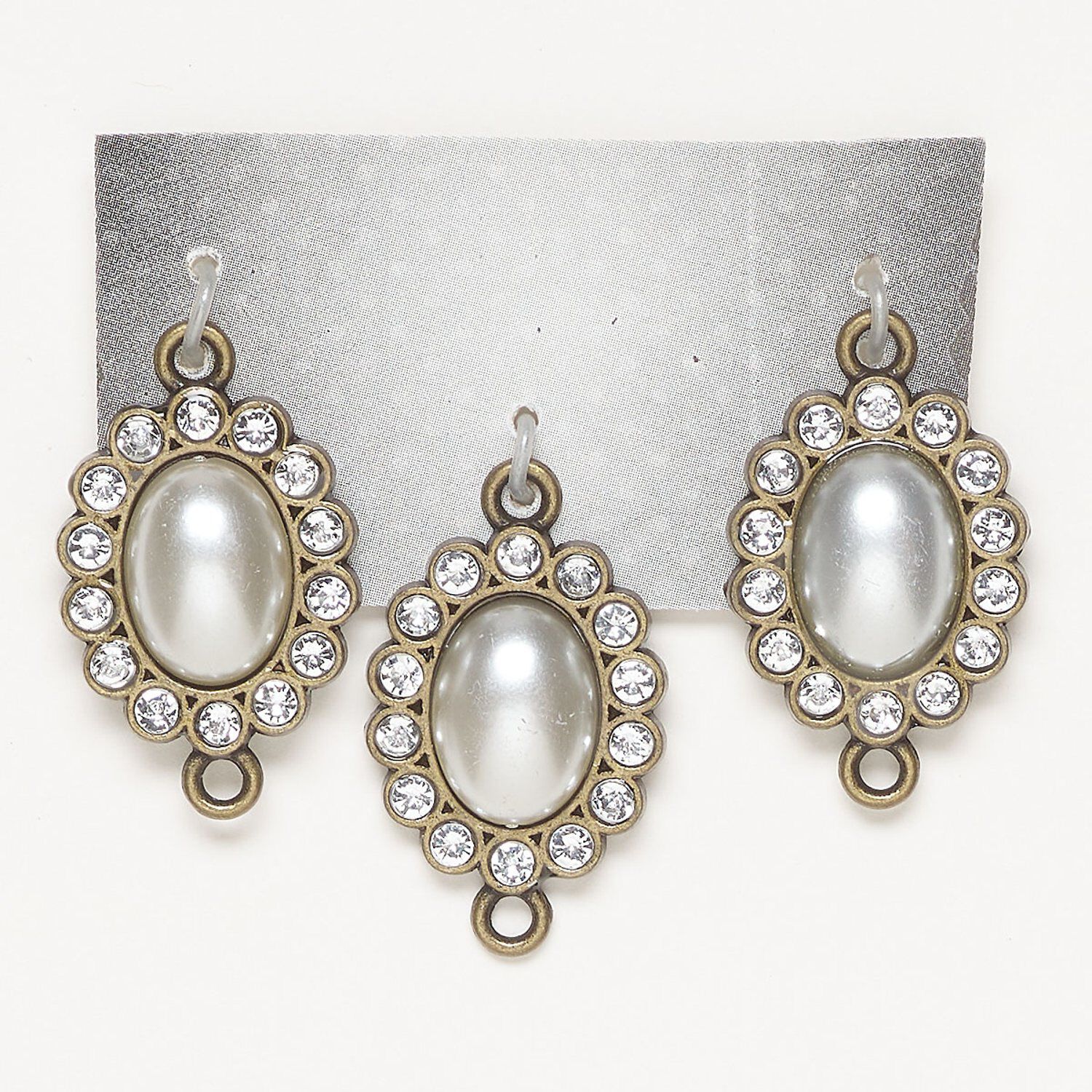 Link, glass / acrylic / antique brass-finished "pewter" (zinc-based alloy), clear and silver, 22x18.5mm single-sided oval. Sold per pkg of 3.