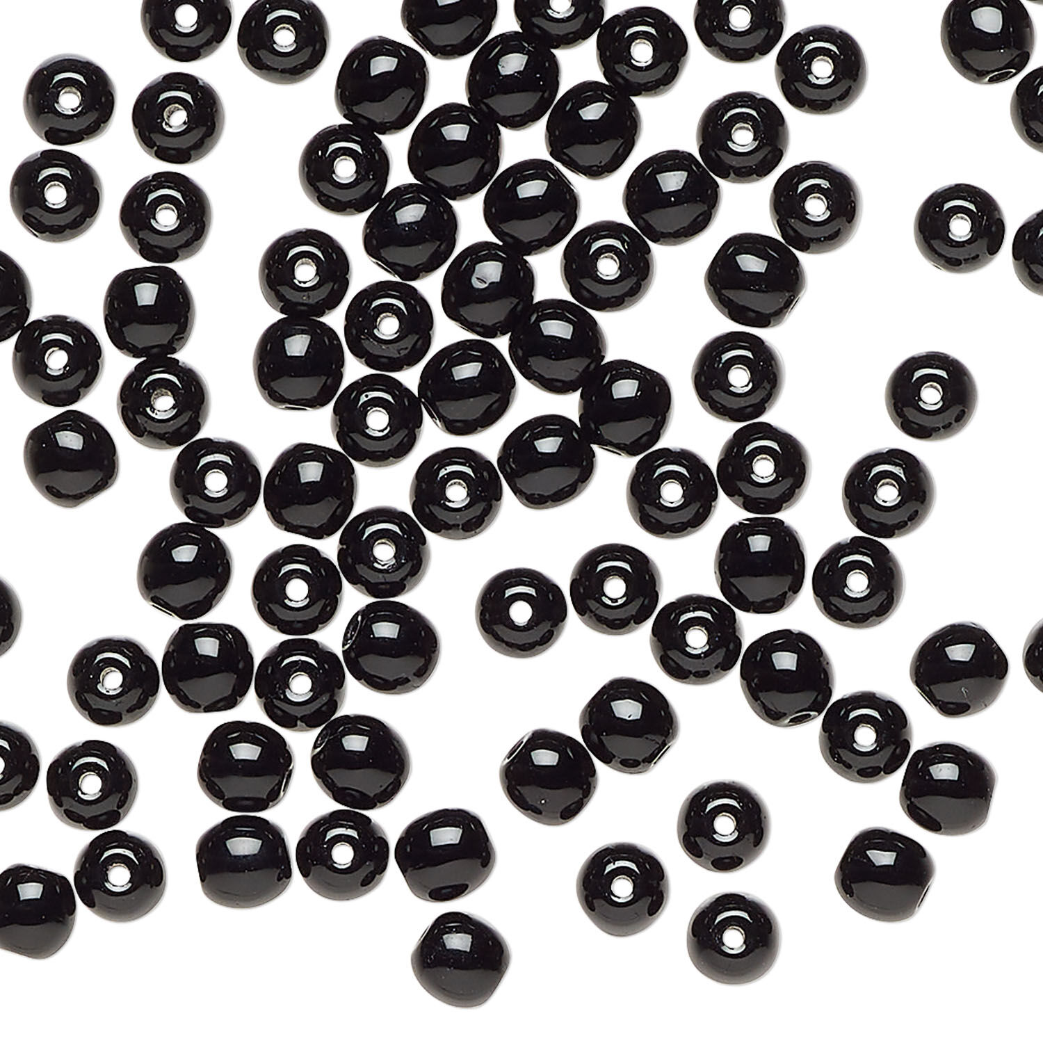 Bead 1pkg100, Czech glass druk, opaque black, 4mm round.