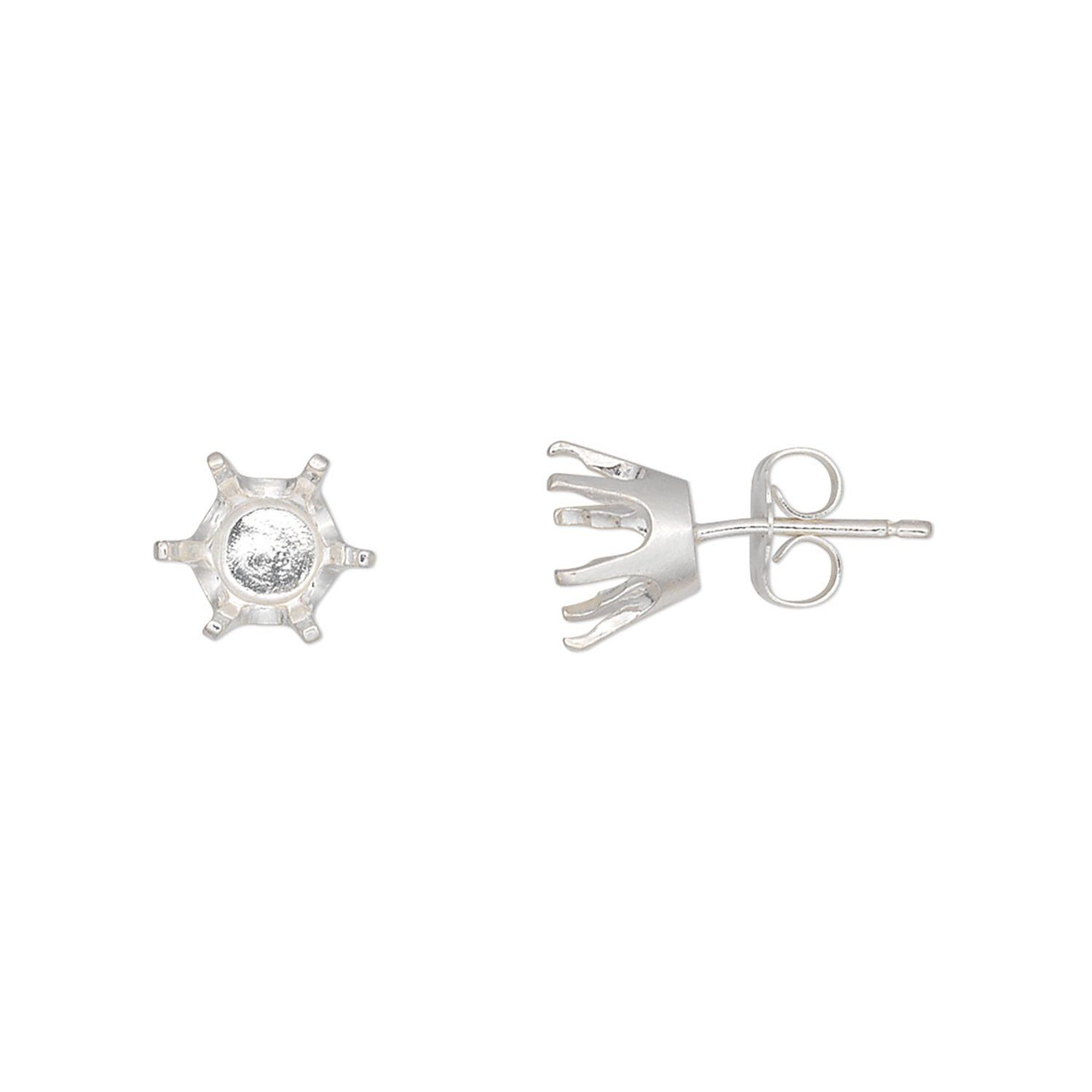 Earstud 1pkg2 Sure-Set™ sterling silver, 7mm round pre-notched 6-prong setting / earnuts, 1 pair