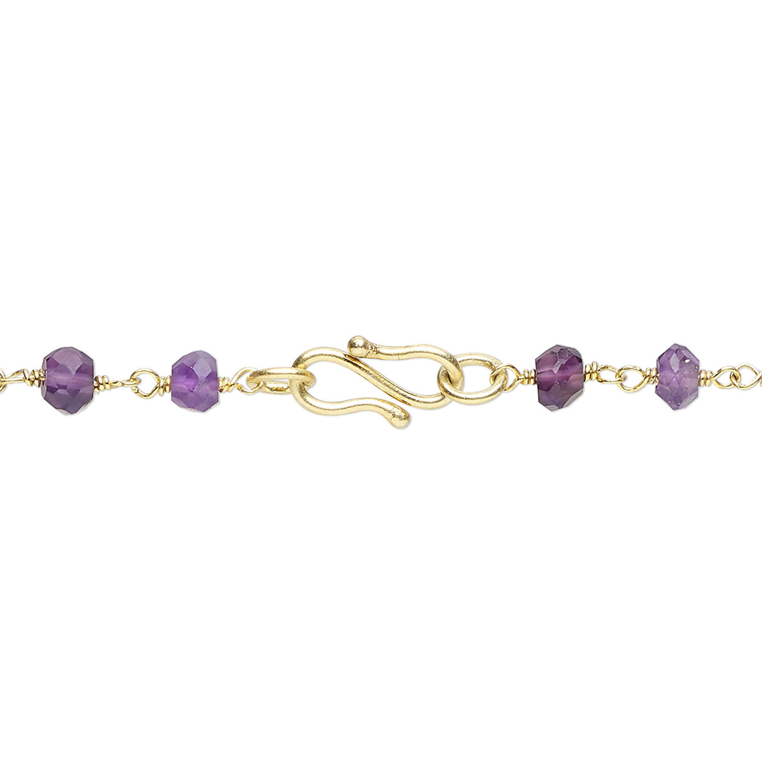 Necklace, amethyst (natural) and gold-finished sterling silver, 3.5-4mm faceted rondelle, 18 inches with S-hook clasp. Sold individually.