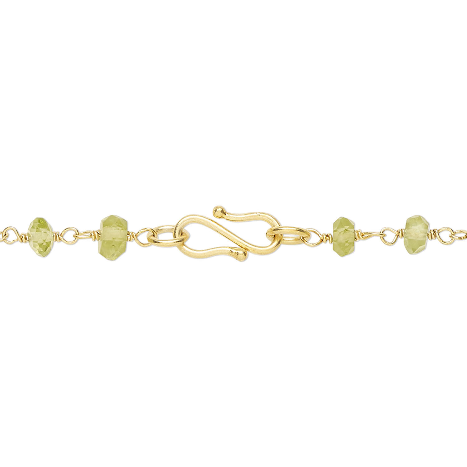 Necklace, peridot (natural) and gold-finished sterling silver, 3.5-4mm hand-cut faceted rondelle, 18 inches with S-hook clasp. Sold individually.