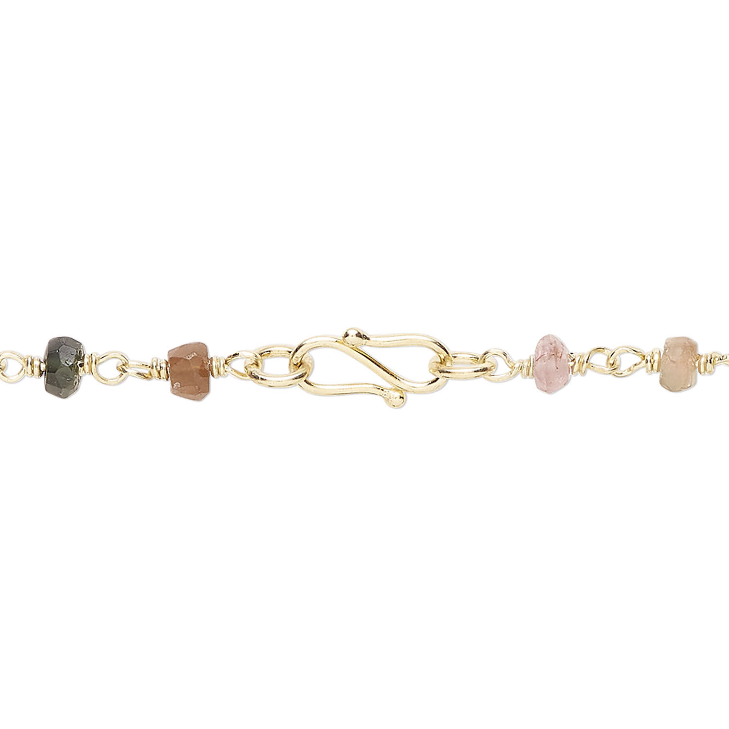 Necklace, multi-tourmaline (natural) and gold-finished sterling silver, 3.5-4mm hand-cut faceted rondelle, 18 inches with S-hook clasp. Sold individually.