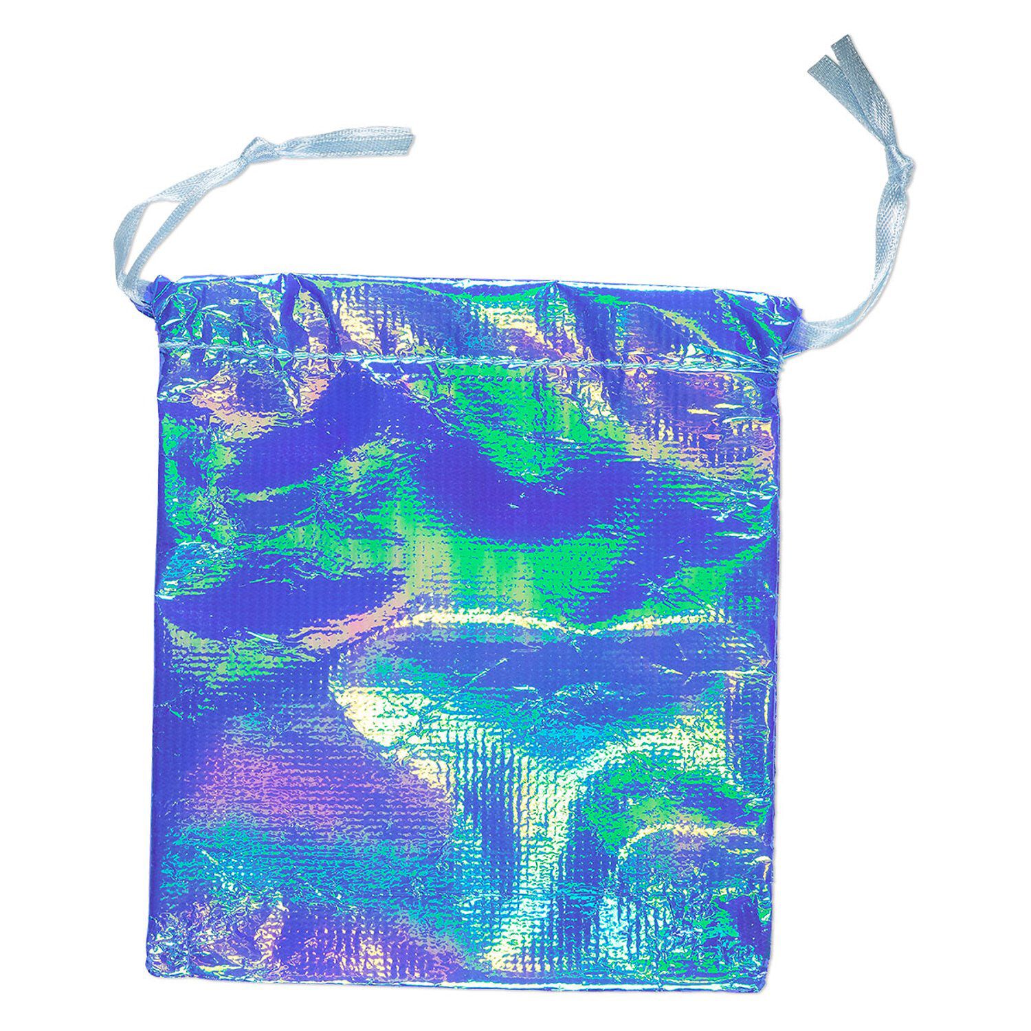 Gift pouch, satin, fluorescent blue, 4-1/2 x 4 inches with drawstring. Sold per pkg of 12.