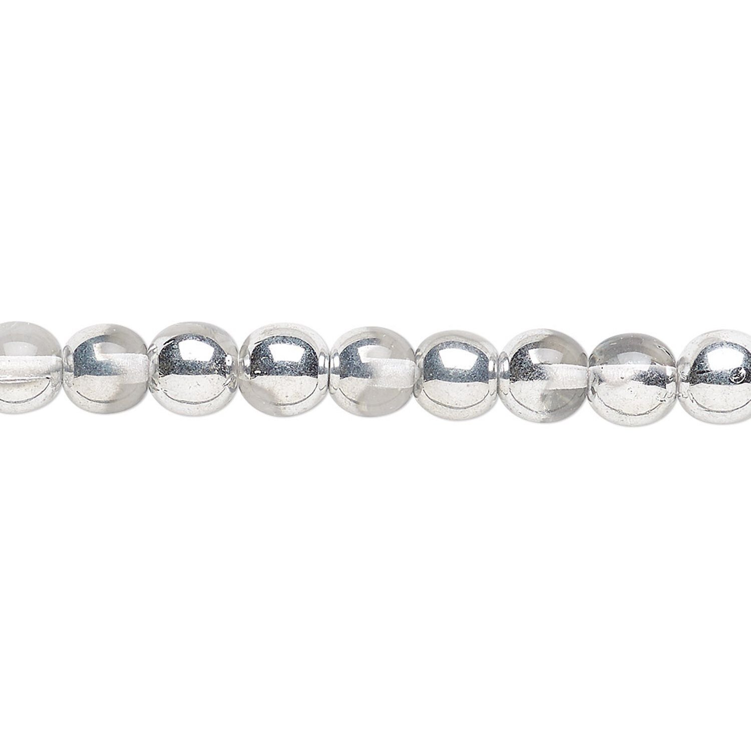 Bead, Czech glass druk, clear with half-coat silver, 6mm round. Sold per 15-1/2" to 16" strand.