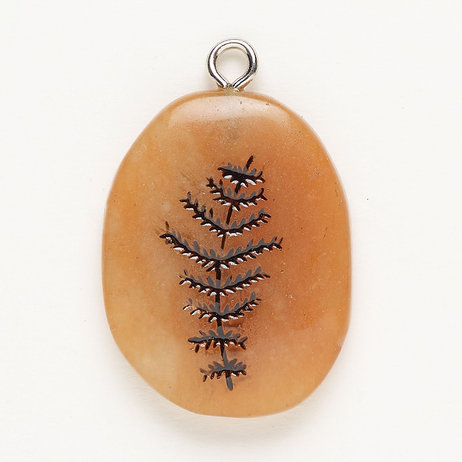 Focal, silver-finished steel / red aventurine (natural) / enamel, black, 32x23mm freeform with fern. Sold individually.