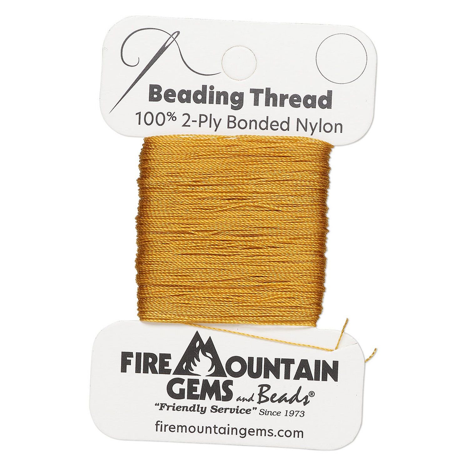 Thread, nylon, gold, size AA. Sold per 50-yard card.