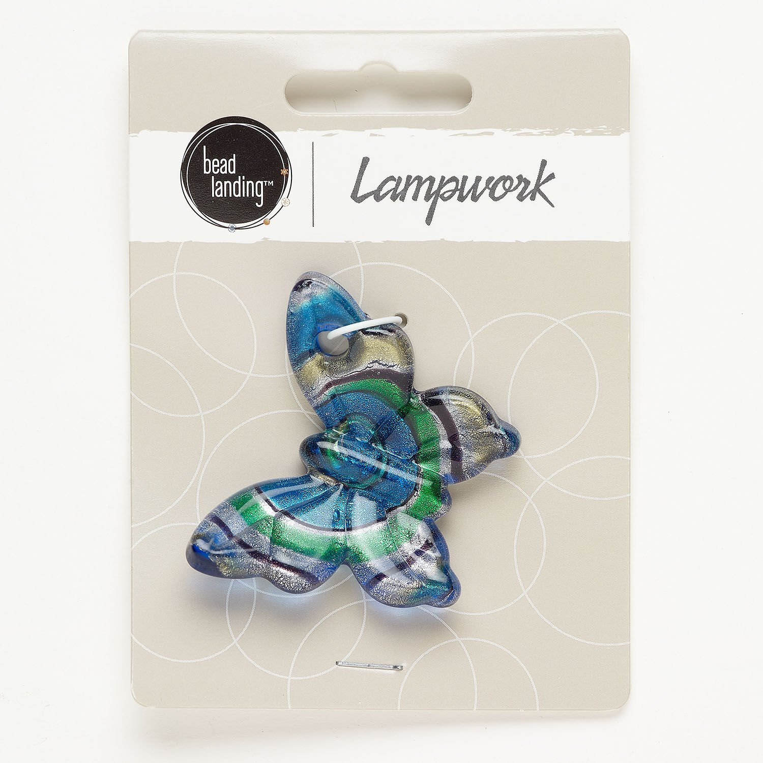 Focal, lampworked glass, green / blue / purple, 46x37mm butterfly with silver-colored foil. Sold individually.