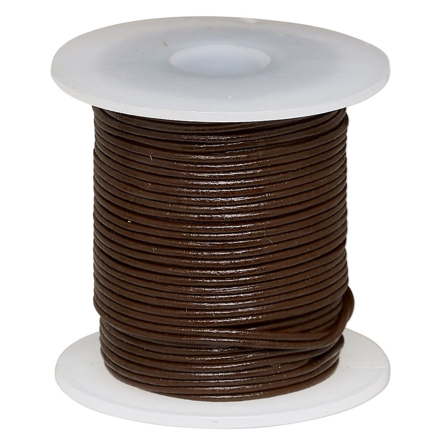 Cord, leather (dyed), brown, 0.5-0.8mm round. Sold per 25-yard spool.