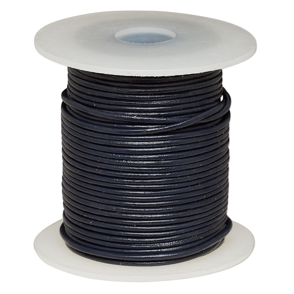 Cord, leather (dyed), navy blue, 1-1.2mm round. Sold per 25-yard spool.