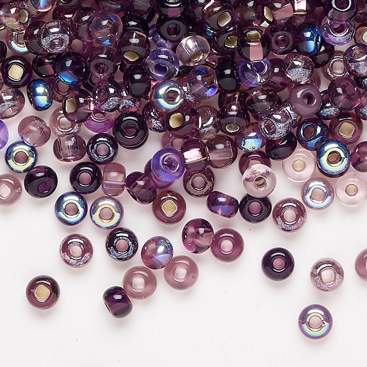 Seed bead mix, glass, 1pkg1, #6 rocaille, 100g, opaque and translucent multi-purple