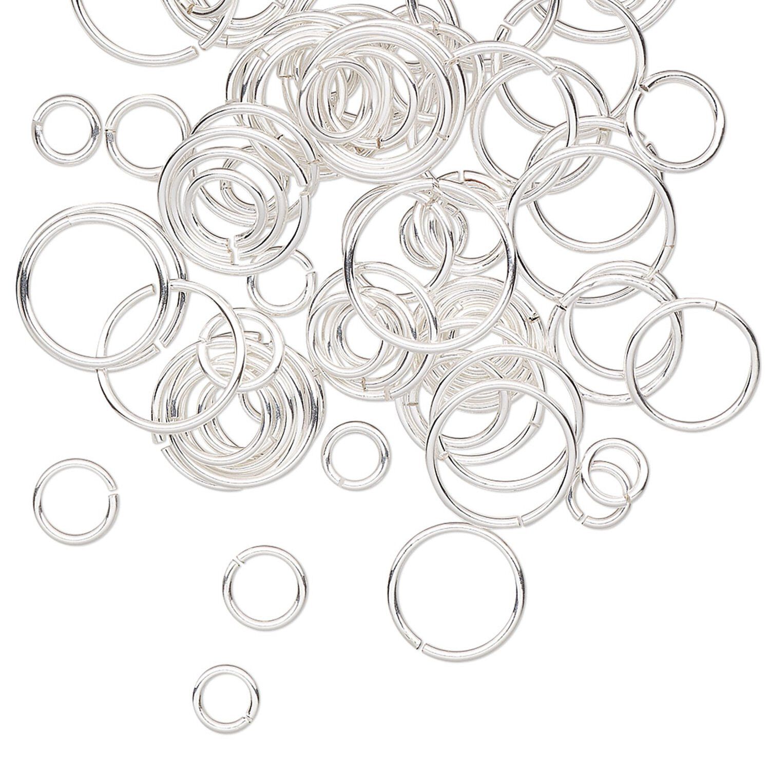 Mix of unsoldered sterling silver-filled jump rings are made of a durable outer layer of sterling silver surrounding a copper-alloy core. Jump rings have additional silver plating for uniformity and are completed with an anti-tarnish coating to preserve the beauty. Jump rings handle like sterling silver and can be soldered. Sizes include rounds ranging from 4-10mm. Jump ring size, gauge and inside diameter are approximate.