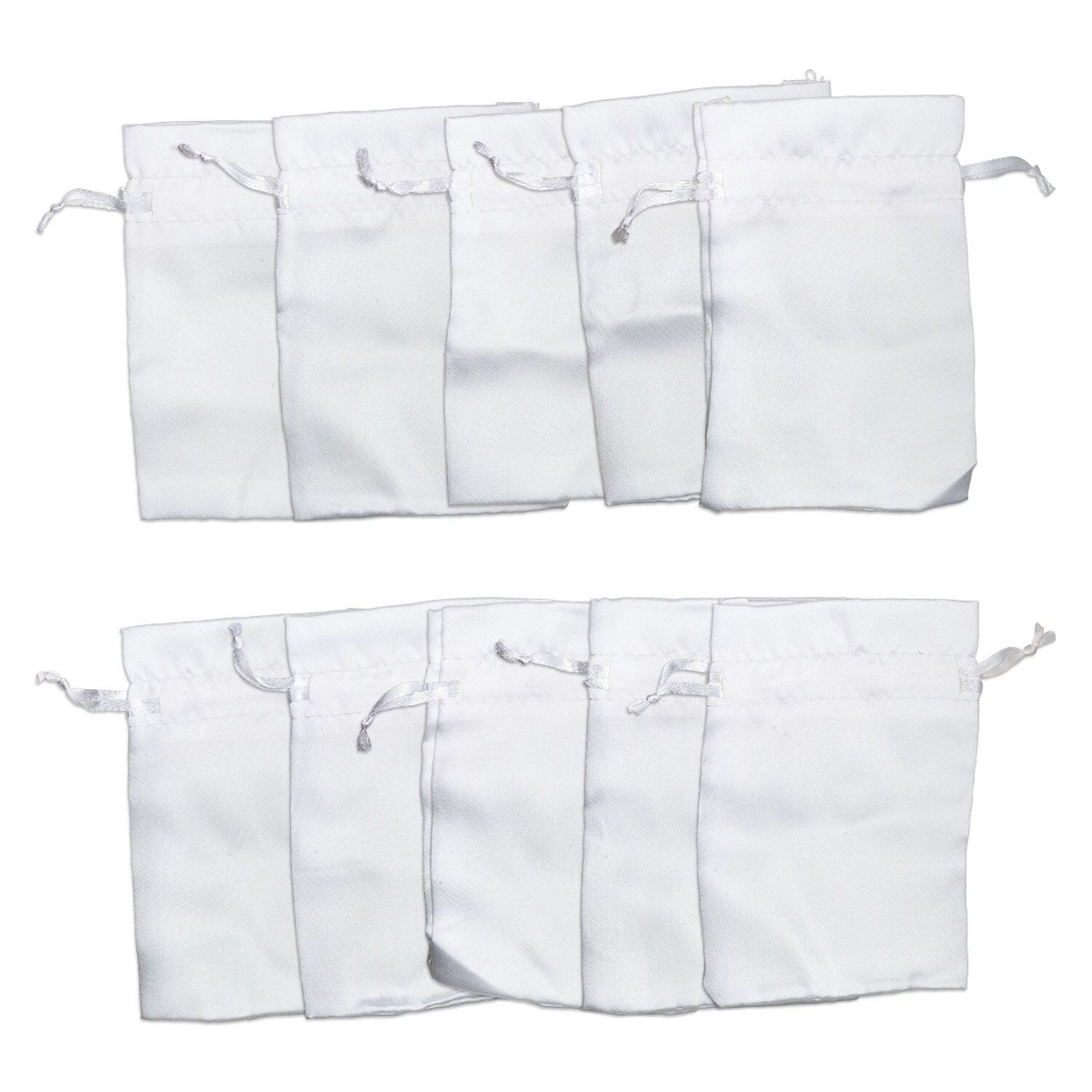 Pouch, satin, white, 4-3/4 x 3-1/2 inches with drawstring closure. Sold per pkg of 10.