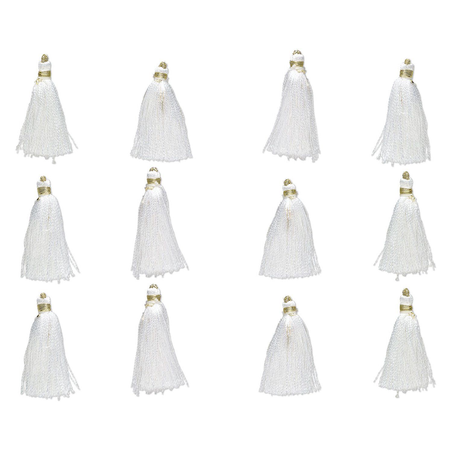 Tassel, silk (imitation) and gold-finished copper, white, 1-3/4 to 2 inches. Sold per pkg of 12.