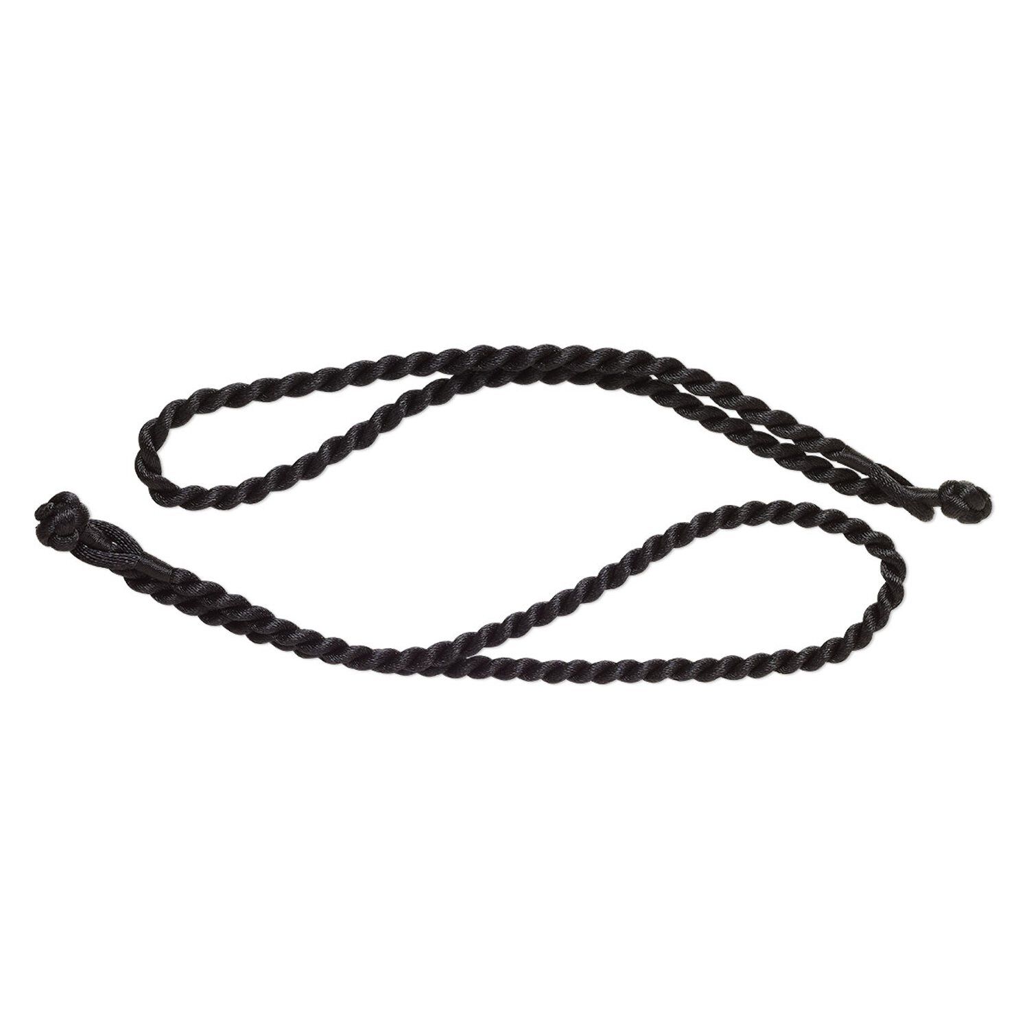 Necklace cord, satin-finished nylon, black, 5mm round twisted, 15 inches with knot closure. Sold per pkg of 2.