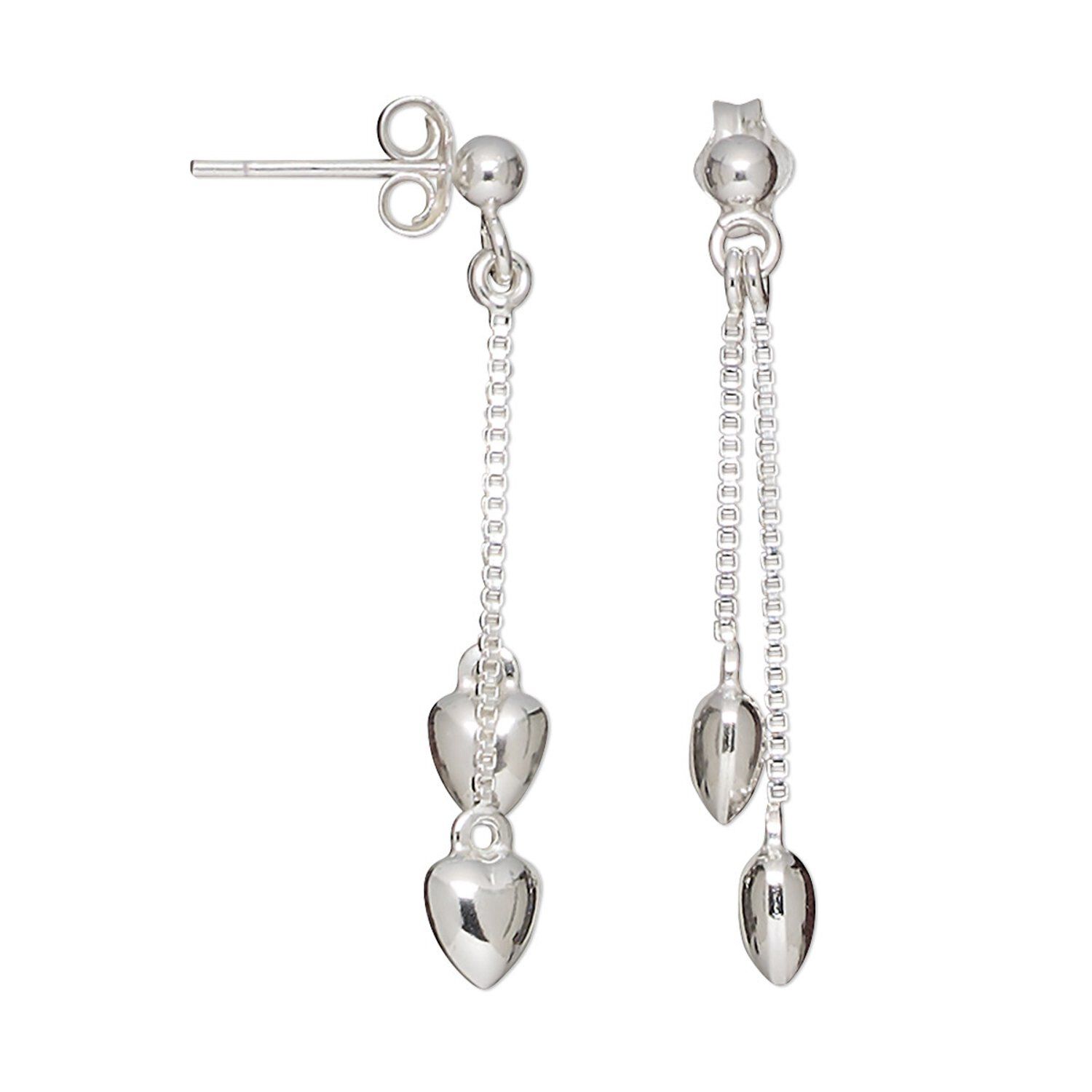 Sterling silver earrings have delicate hearts gracefully dangling from ball studs. Ready-to-wear earrings make great retail displays. Earrings have an anti-tarnish coating.