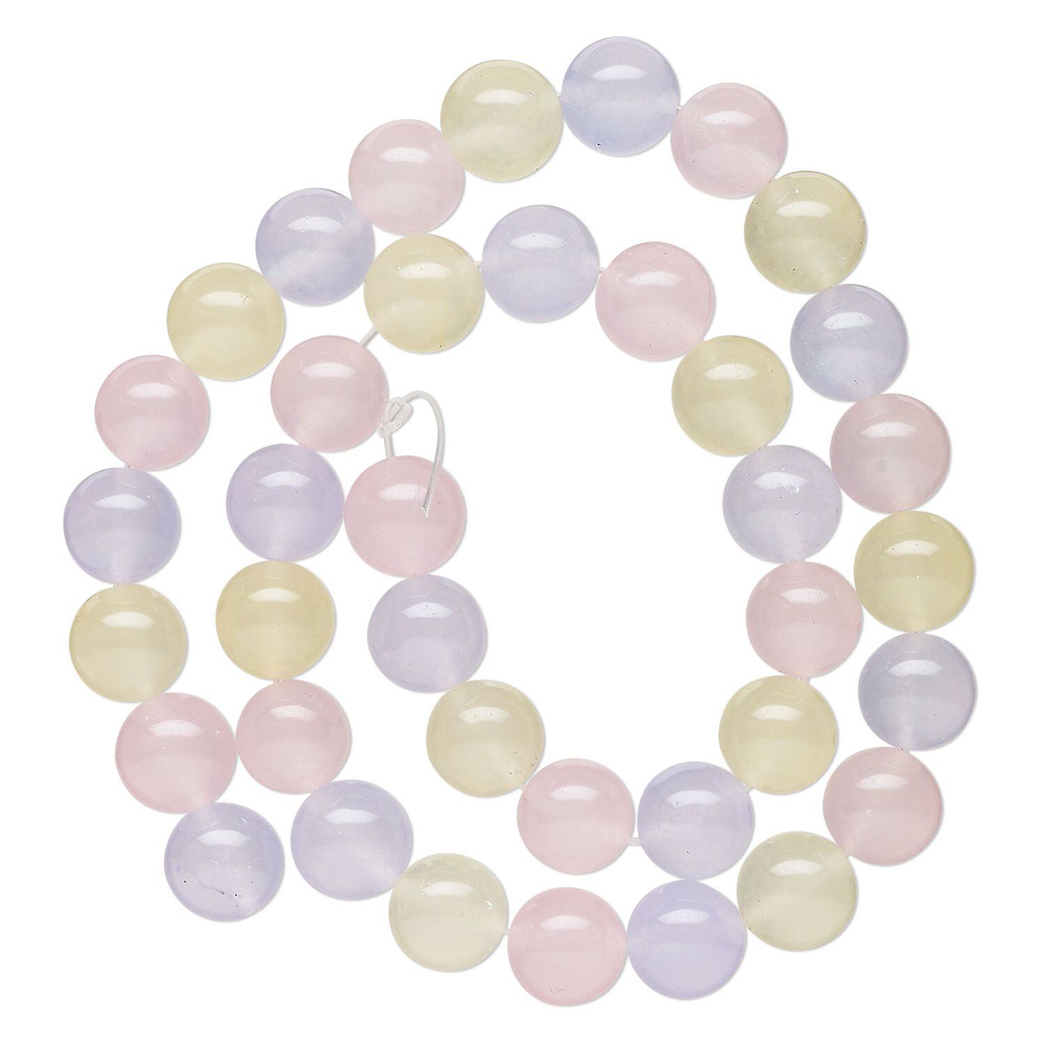 Bead, mountain "jade" (dolomite marble) (dyed), pastel yellow / pastel purple / pastel pink, 10mm round, B grade, Mohs hardness 3. Sold per 15-inch strand, approximately 35 beads.
