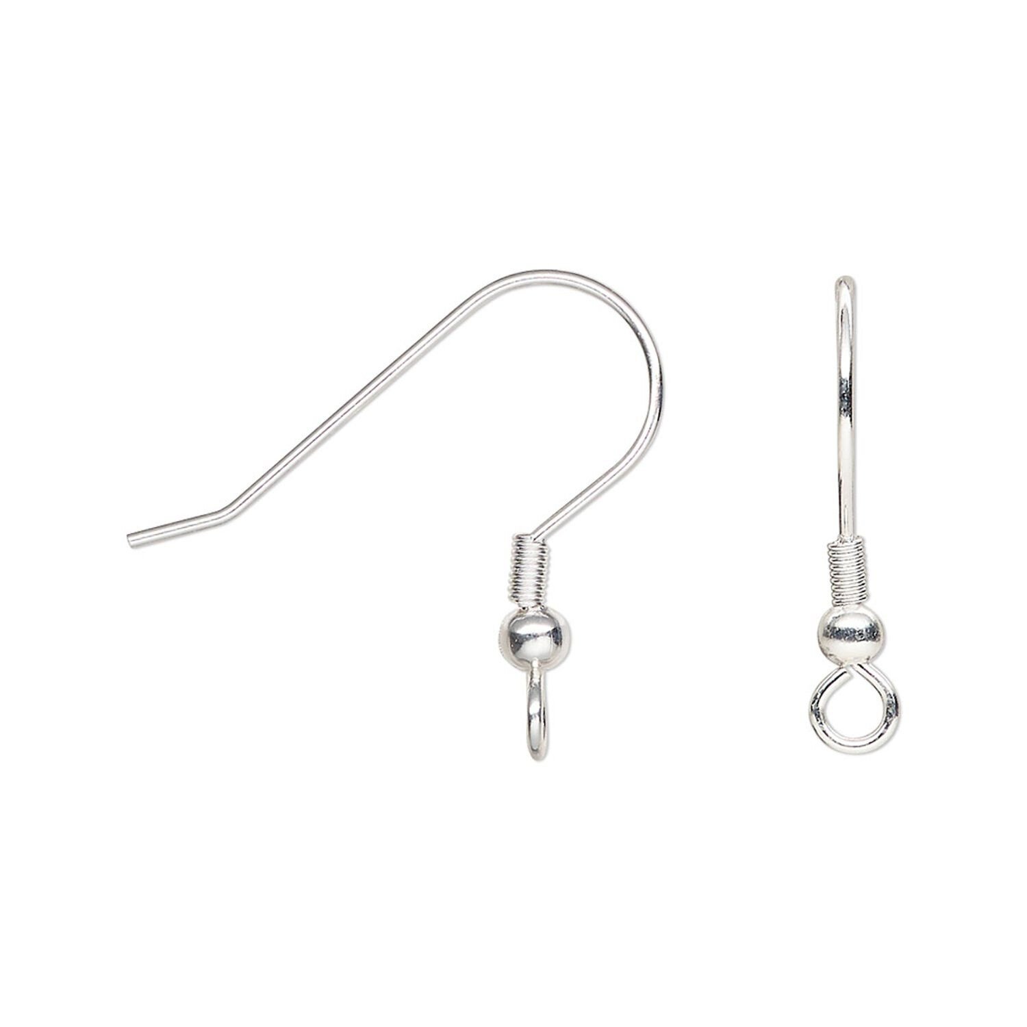 Ear wire fishhook 1pkg10, 20mm / 3mm ball / 4mm coil / perpendicular open loop, 21 gauge silver-finished stainless steel 5 pair