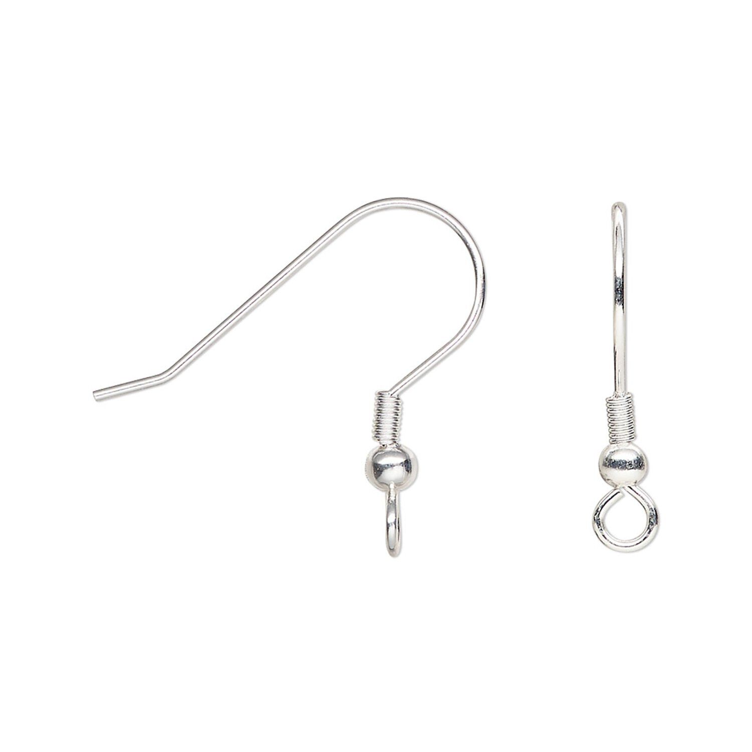 Ear wire fishhook 1pkg100, 20mm / 3mm ball / 4mm coil / perpendicular open loop, 21 gauge silver-finished stainless steel 50 pair