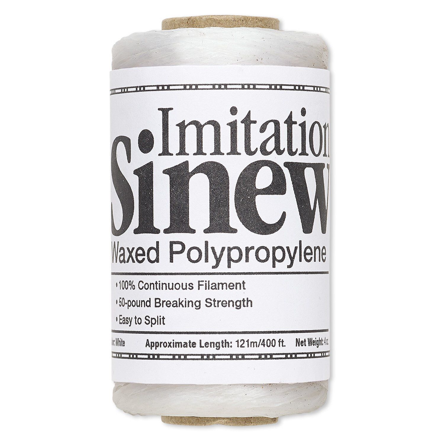 This waxed cord is made from 100% continuous filament polypropylene fiber. Imitation sinew is uniform and consistent throughout; it can be cut to any length and split lengthwise to fit a range of tasks. It is ideal for a variety of Native American art forms such as dream catchers, beading, leatherwork and more. Waxing protects the fiber and helps it move through leather and beads easier.
