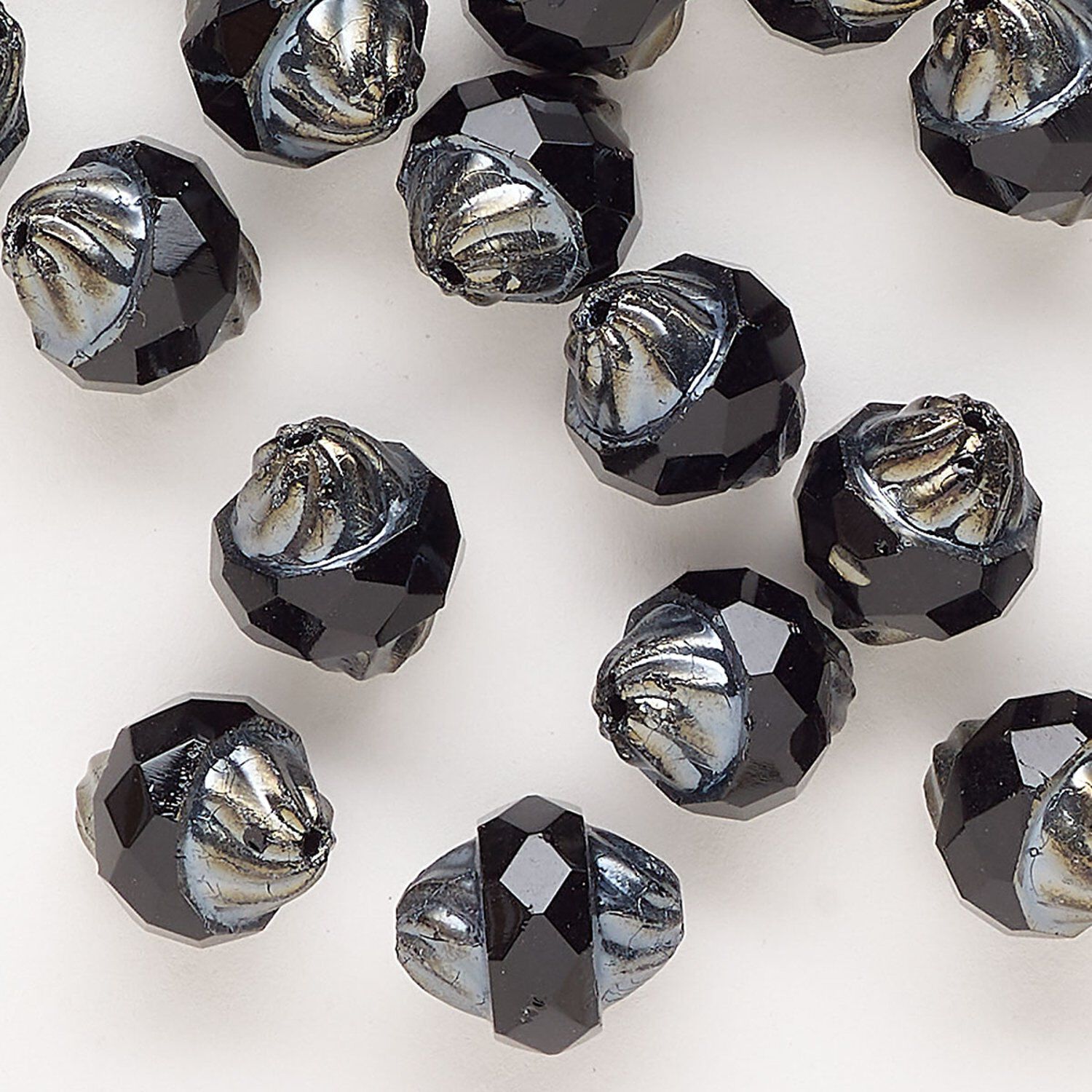 Bead, fire-polished, glass, opaque gunmetal and jet luster, 11x10mm fancy faceted oval. Sold per pkg of 30.