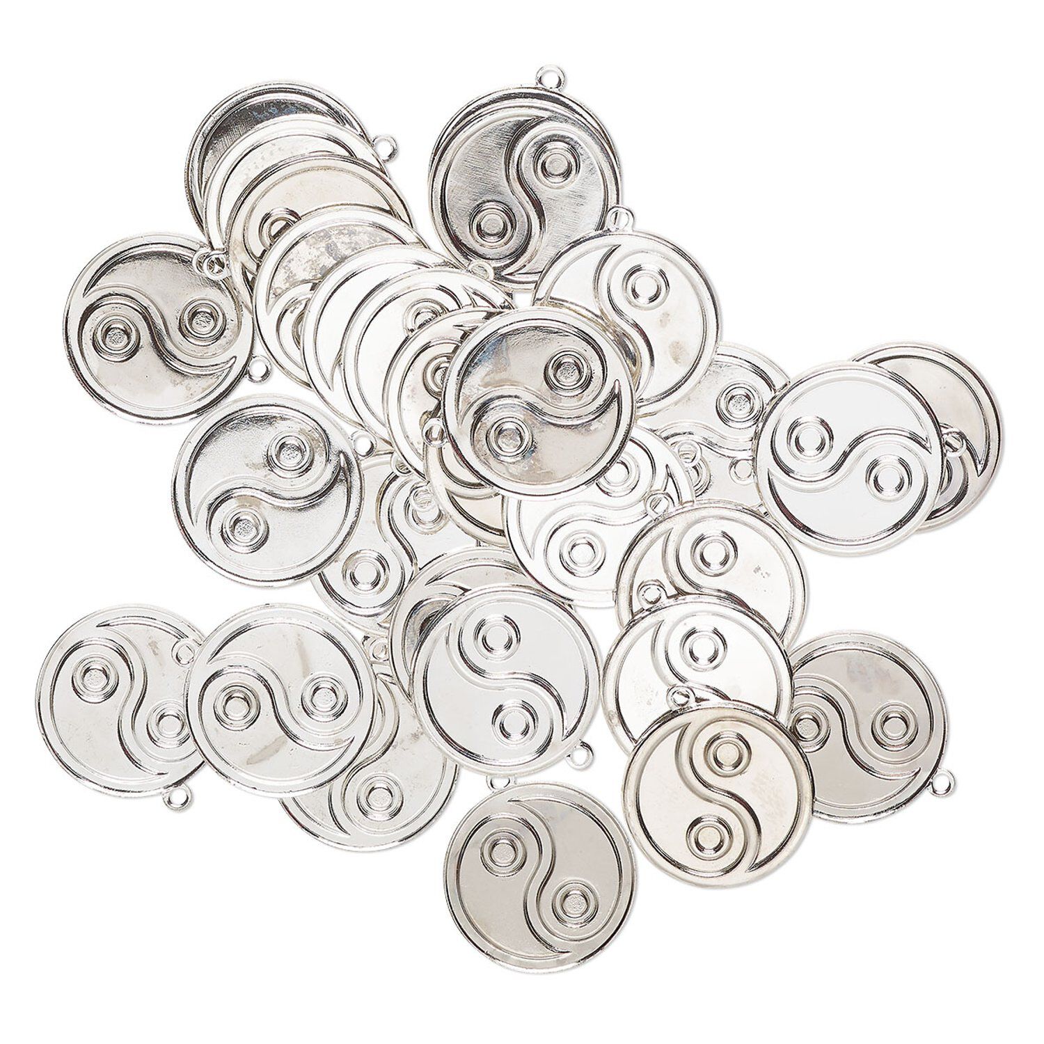 Drop, steel, pkg/30, 18mm 2-sided round with yin-yang design, antique silver finish.
