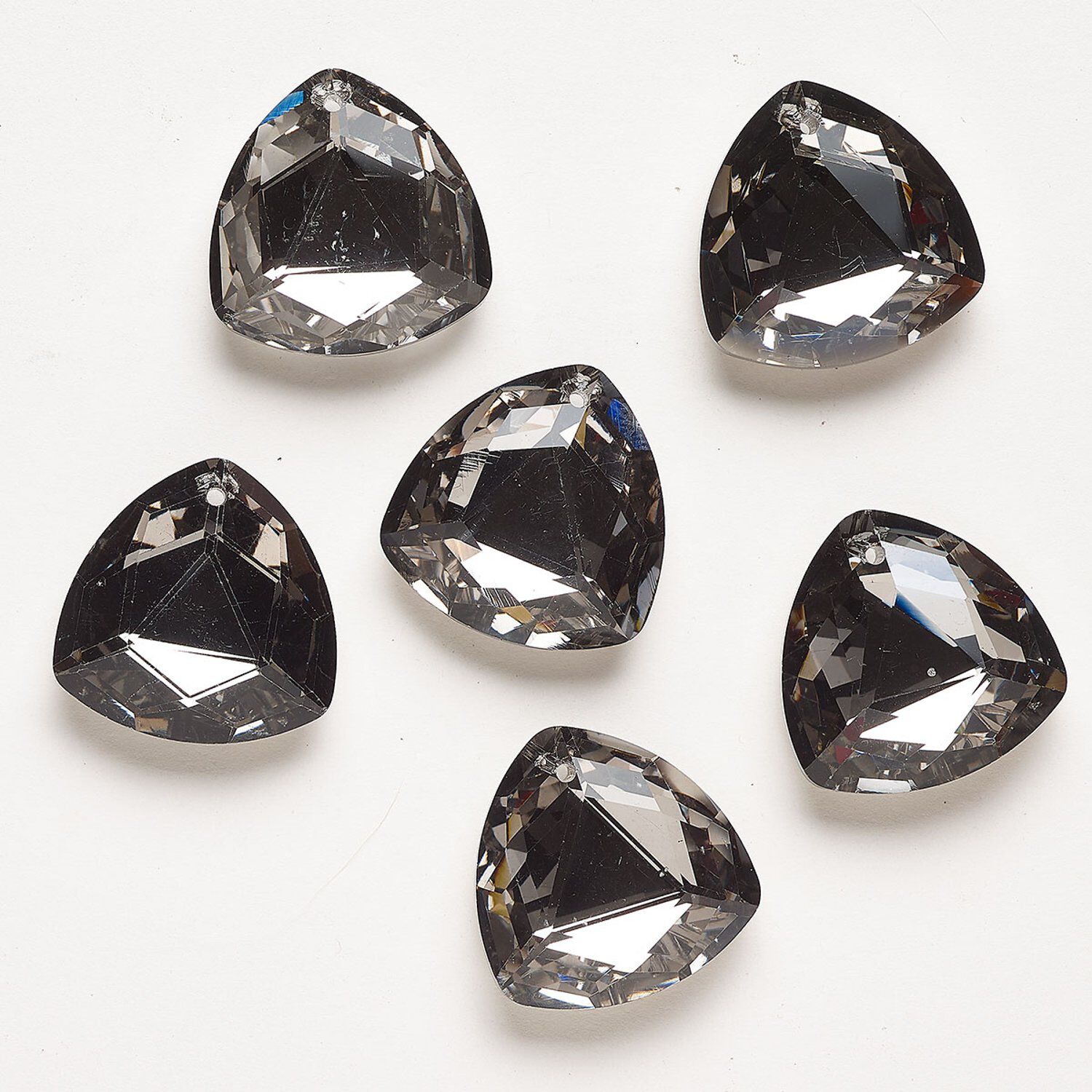 Focal, glass, opaque black diamond with foil back, 28mm top-drilled faceted triangle. Sold per pkg of 6.