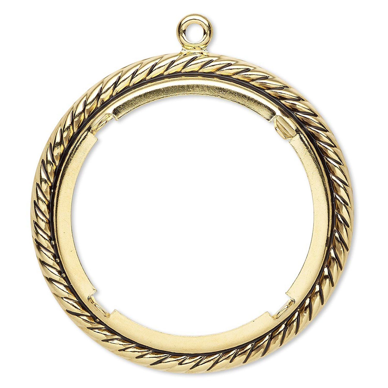 Focal, antique gold-plated brass, 47mm rope edge round with 38mm round setting. Sold per pkg of 10.