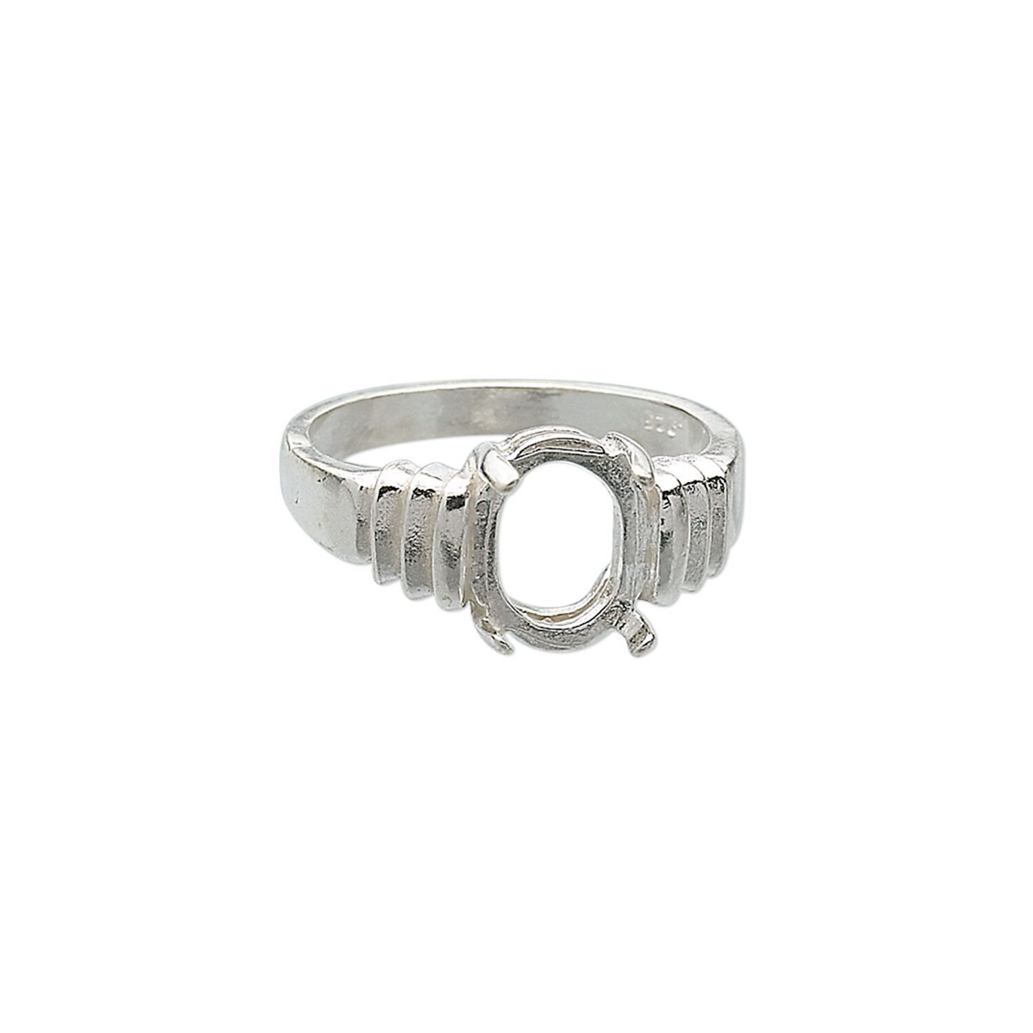 Ring, sterling silver, tri-slash band with 10x8mm 4-prong oval setting, size 7. Sold individually.