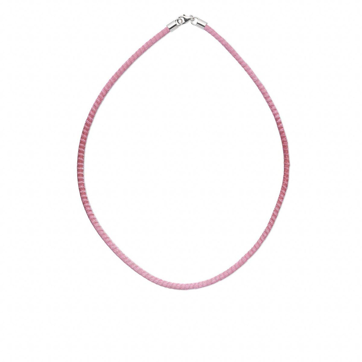 Fine, Italian brass mesh necklaces--perfect for large-bail pendants and large-hole beads. Pink-colored brass mesh wraps around leatherette cord for a vivid contrast. Finished with an imitation rhodium-finished sterling silver lobster claw clasp. Necklace fits beads or large bails with a 6mm or larger hole size.